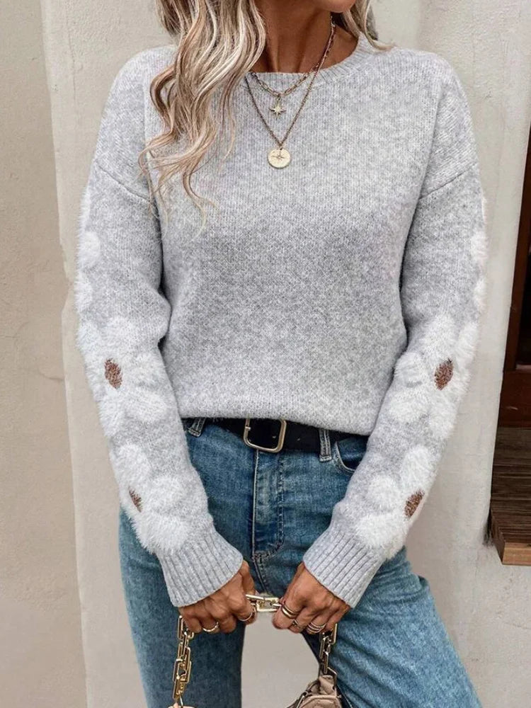 Notre populaire pull Ambre avec motif floral est le choix parfait pour l'automne et l'hiver. Ce pull tendance allie confort et design magnifique, vous permettant d'être toujours élégante, que ce soit pour une tenue décontractée ou au bureau.
