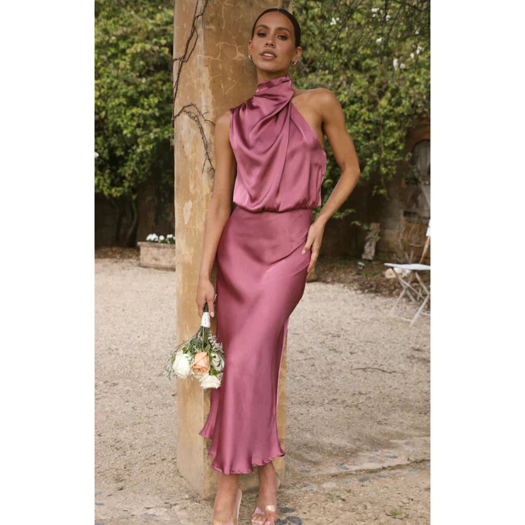 Ambrine | Femme Robe Longue | Satin Fluide et Intemporel