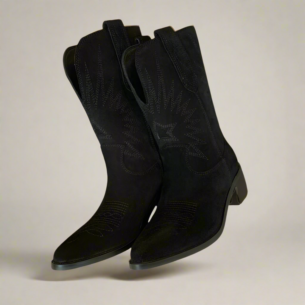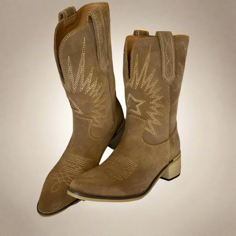 Belle | Bottes Femme Cow Boy Suéde avec Western Détails Cuir Brodé