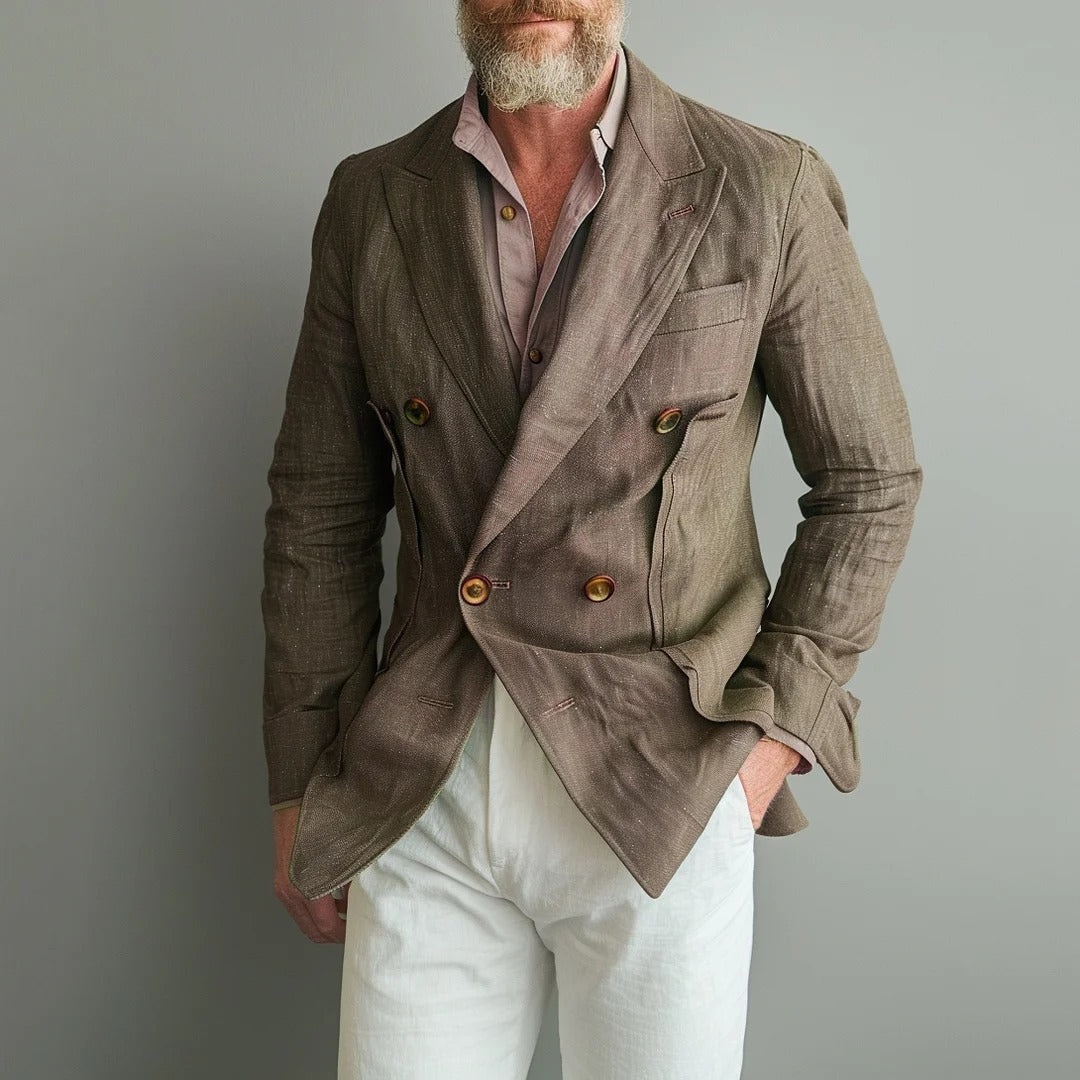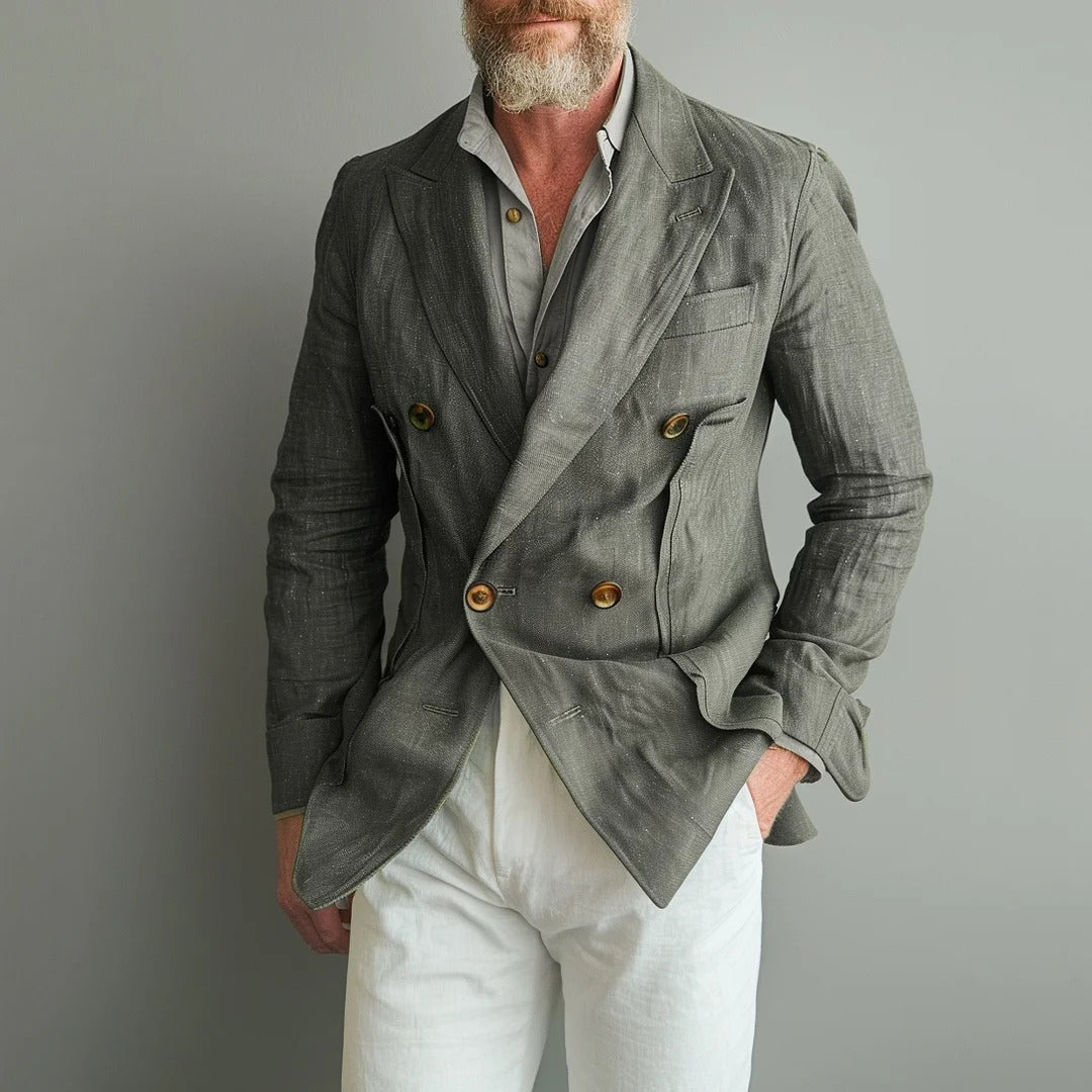 Élégance et charisme se rencontrent dans ce blazer croisé à revers en pointe. Avec sa coupe structurée et sa couleur unie sophistiquée, il incarne le style intemporel, parfait pour une allure distinguée en toute occasion.
