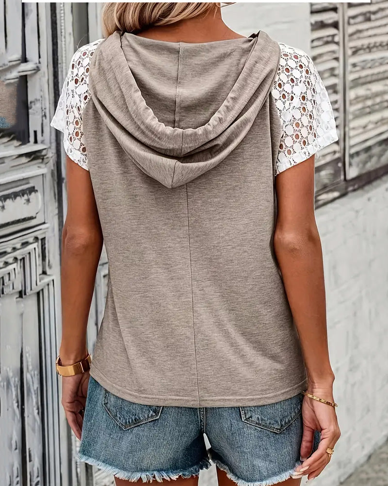 Blouse À Capuche Dentelle Ajourée Décontractée