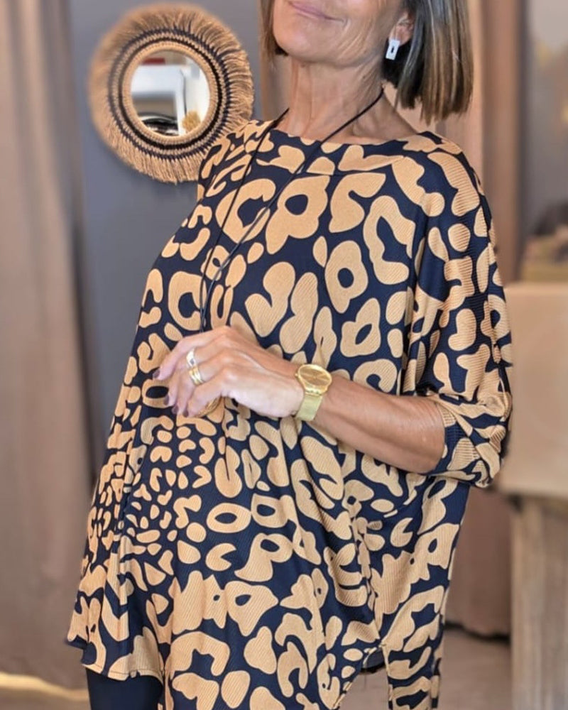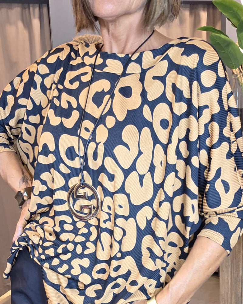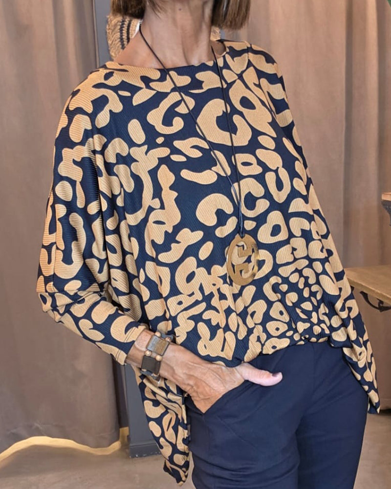 Blouse Col Rond Manches Chauve-Souris Imprimé