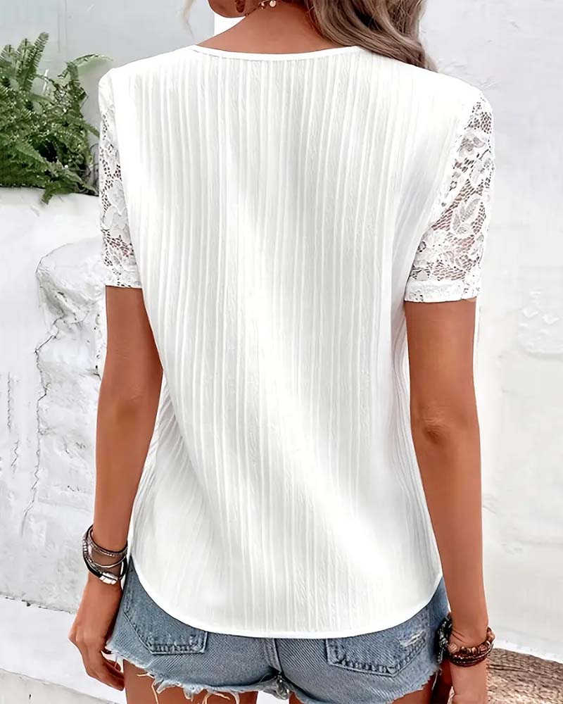 Blouse Col V Unie Dentelle Couture
