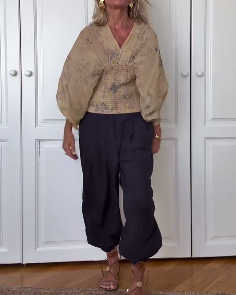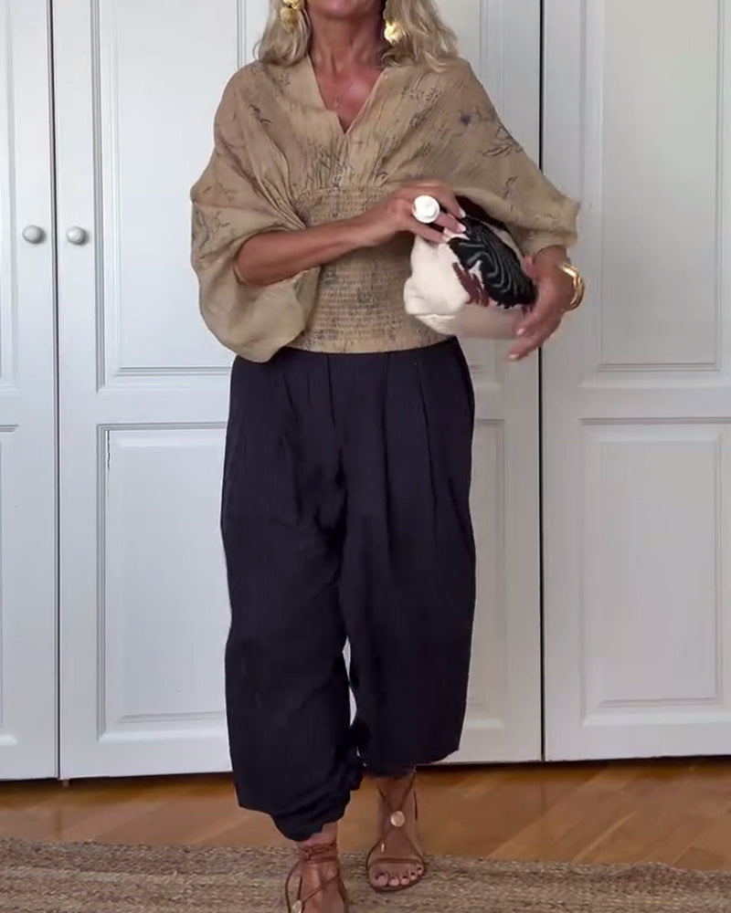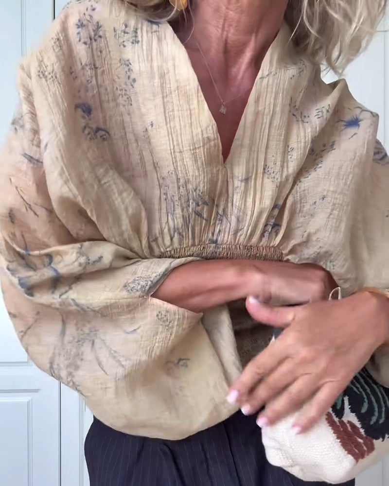 Blouse Imprimée À Encolure En V Et Manches Batwing