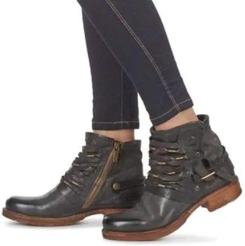 Bottes à cheville en cuir rétro pour femmes | Tendance