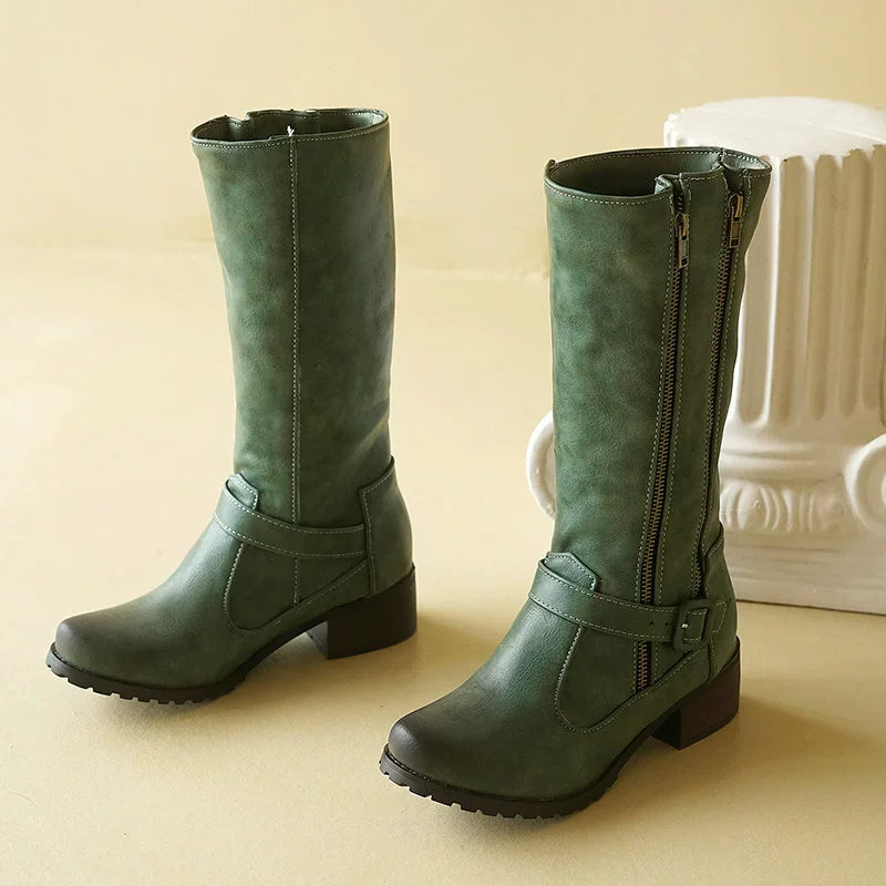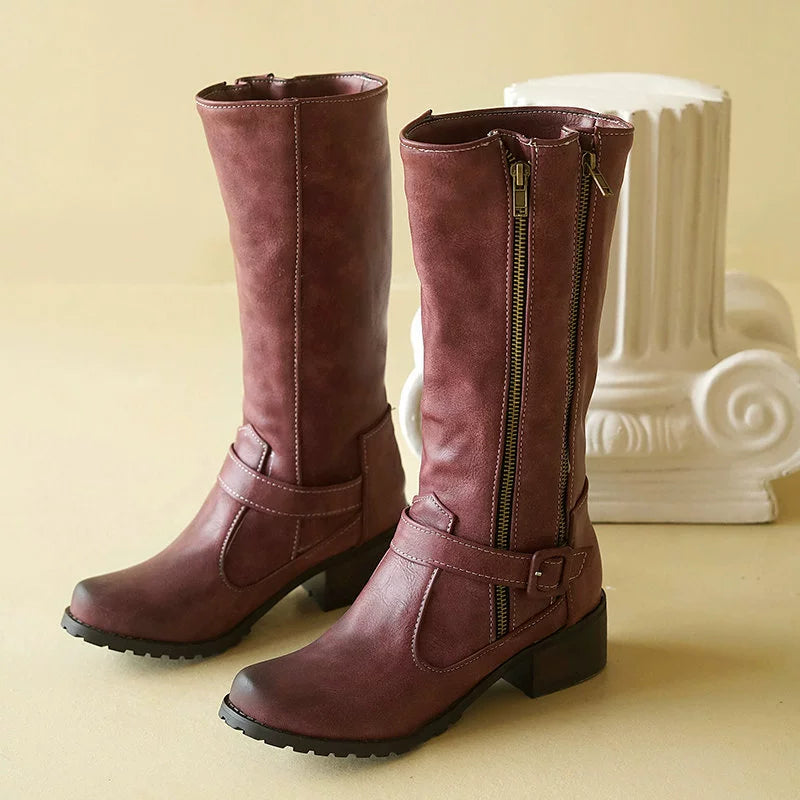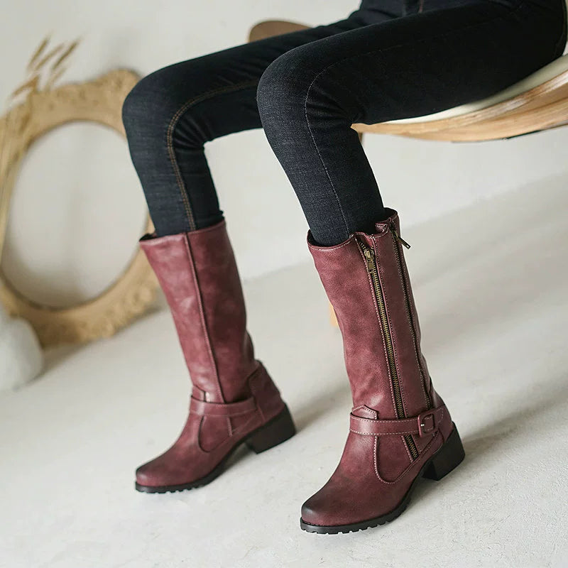 Les bottes pour femme se distinguent par leur tige haute et leur talon bas, créant une apparence équilibrée et stable. Leur coupe droite et leur design épuré mettent en valeur des lignes régulières. Le bout arrondi apporte une touche douce à l’ensemble. La fermeture latérale permet un enfilage simple et conserve un style structuré. Ce modèle complète aisément une tenue du quotidien ou habillée.