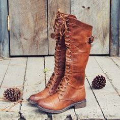 Bottes hautes femme - Cuir suédé - Lacets robustes - Semelle épaisse antidérapante