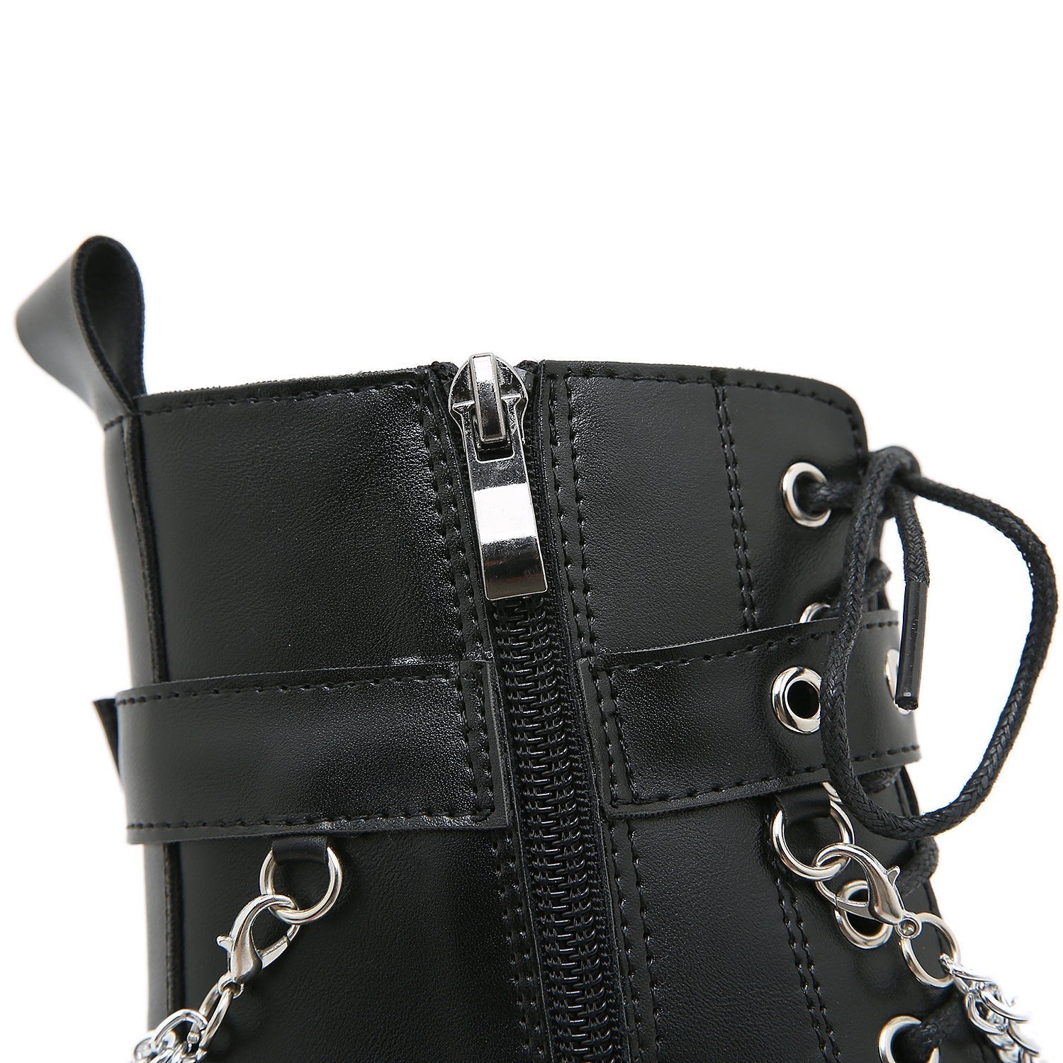 Bottines Gothiques à Lacets pour Femme avec Chaînes et Boucles | Bottines à Plateforme