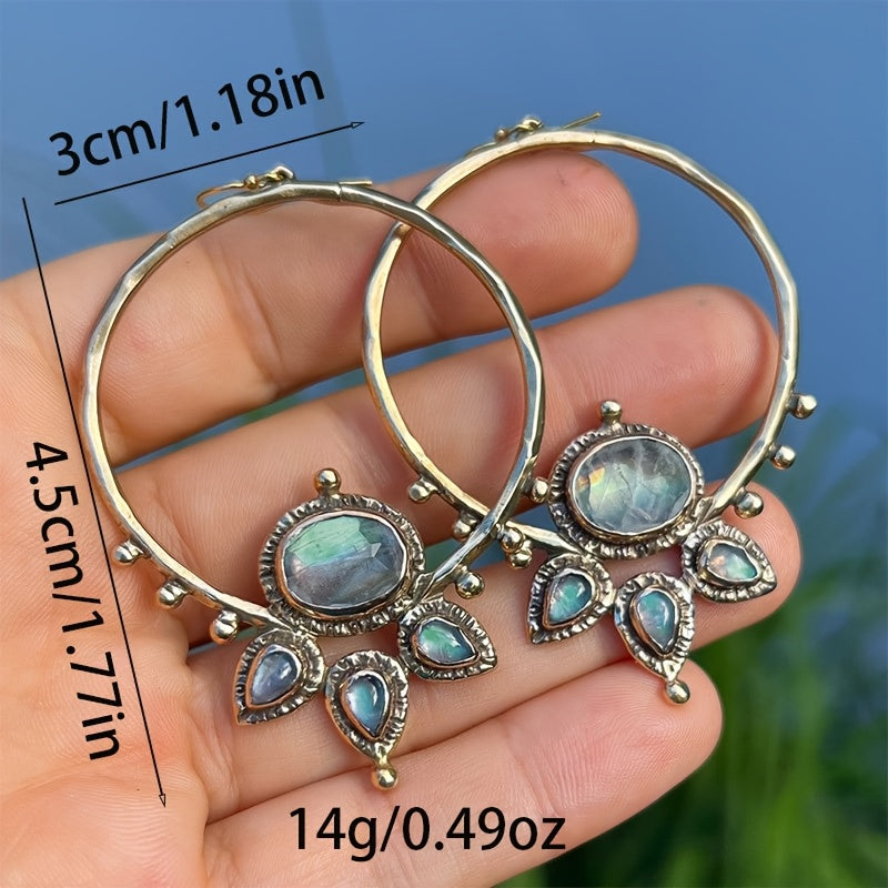 🇫🇷 Boucles d’oreilles pendantes Lotus avec pierres de lune bleues