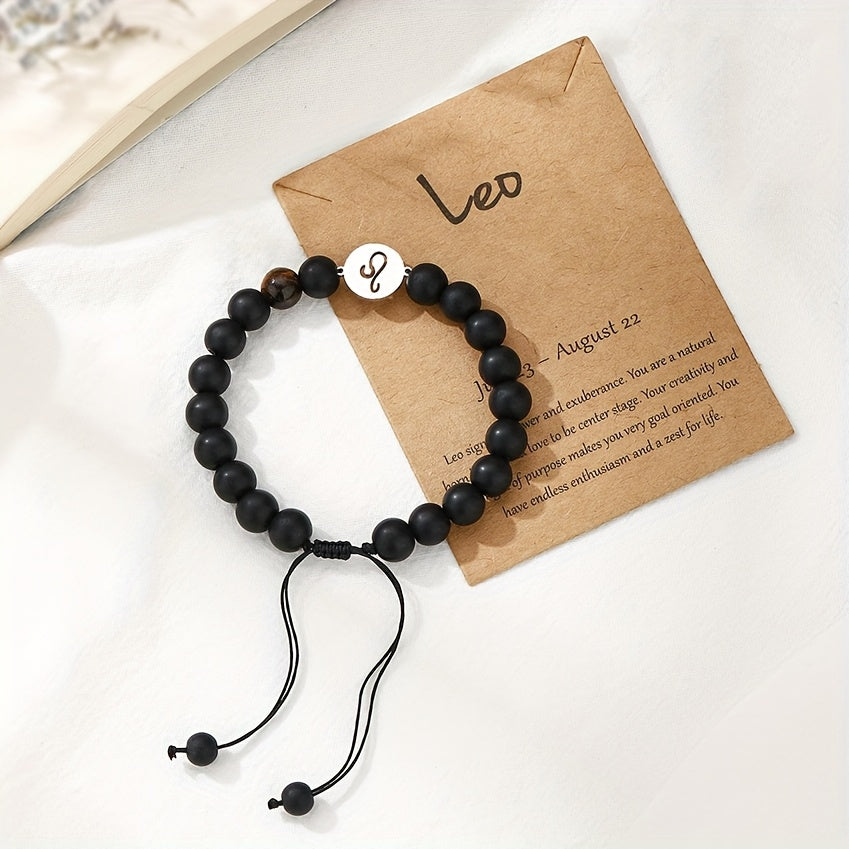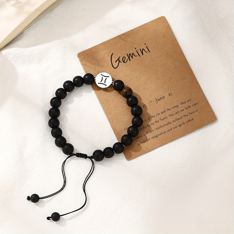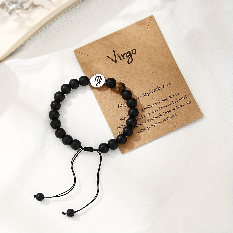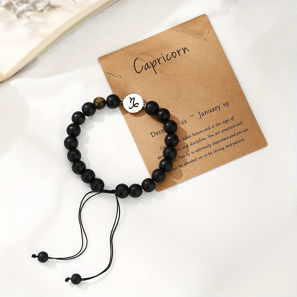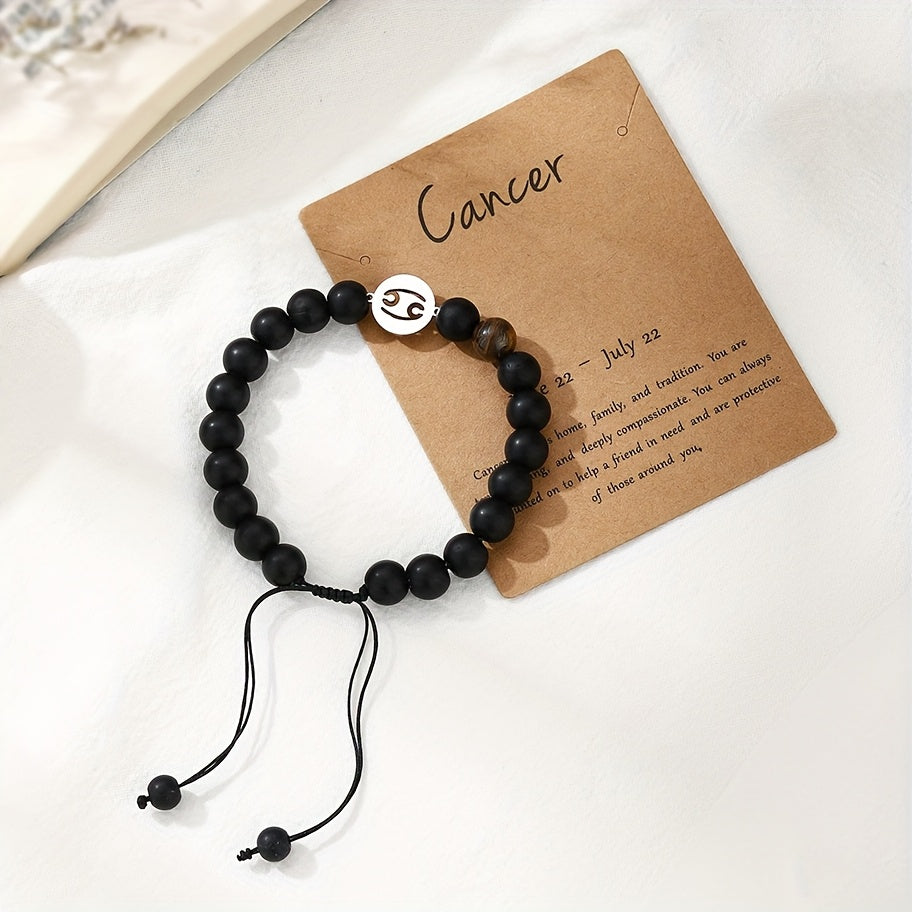 Bracelet Zodiaque en Perles Noires – Ajustable et Élégant