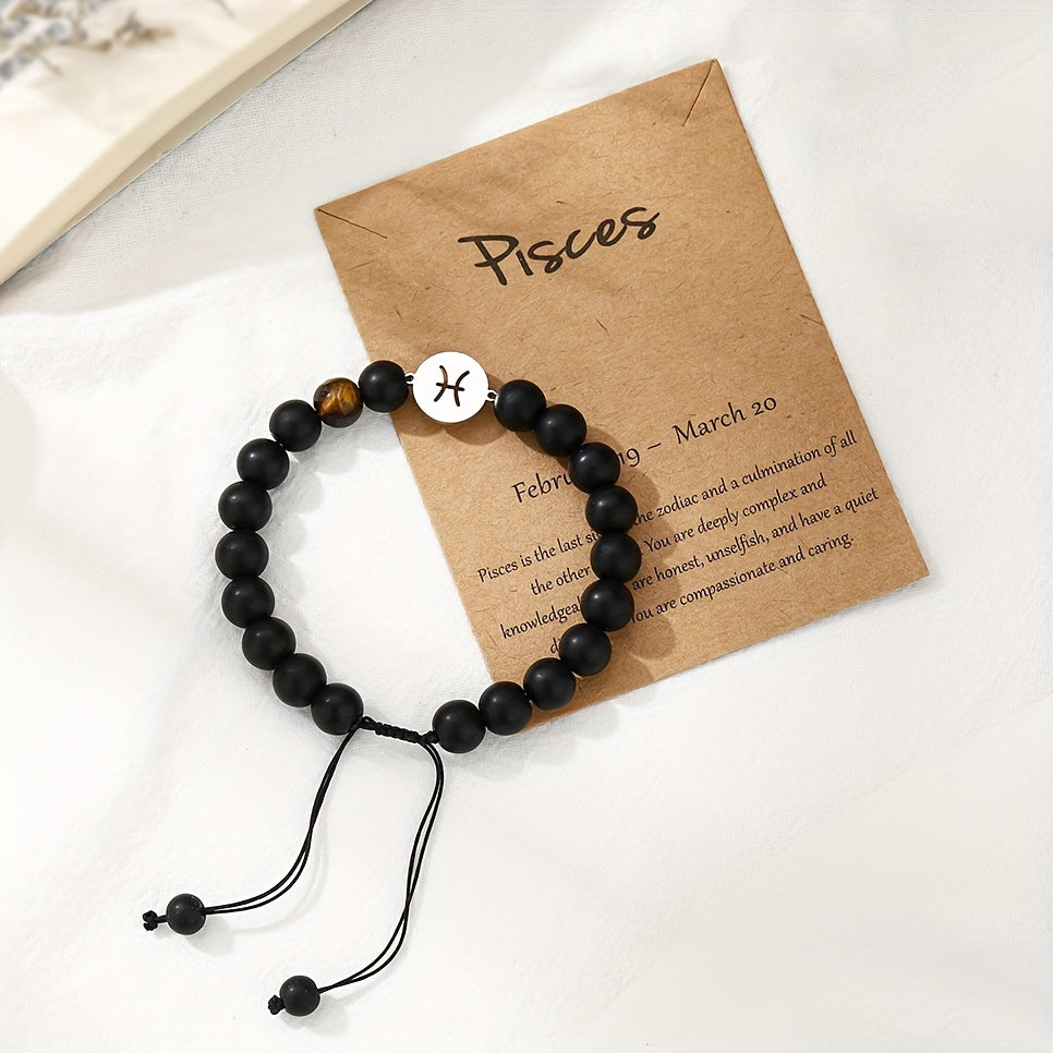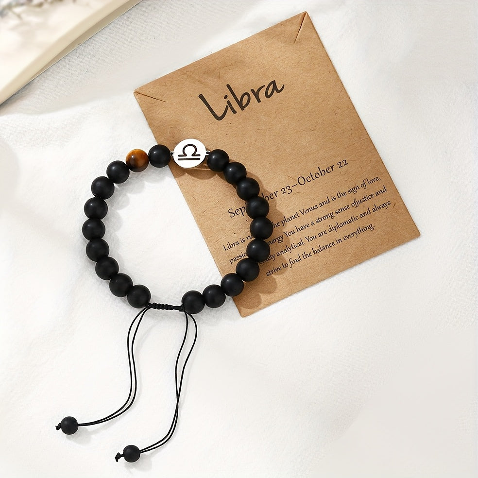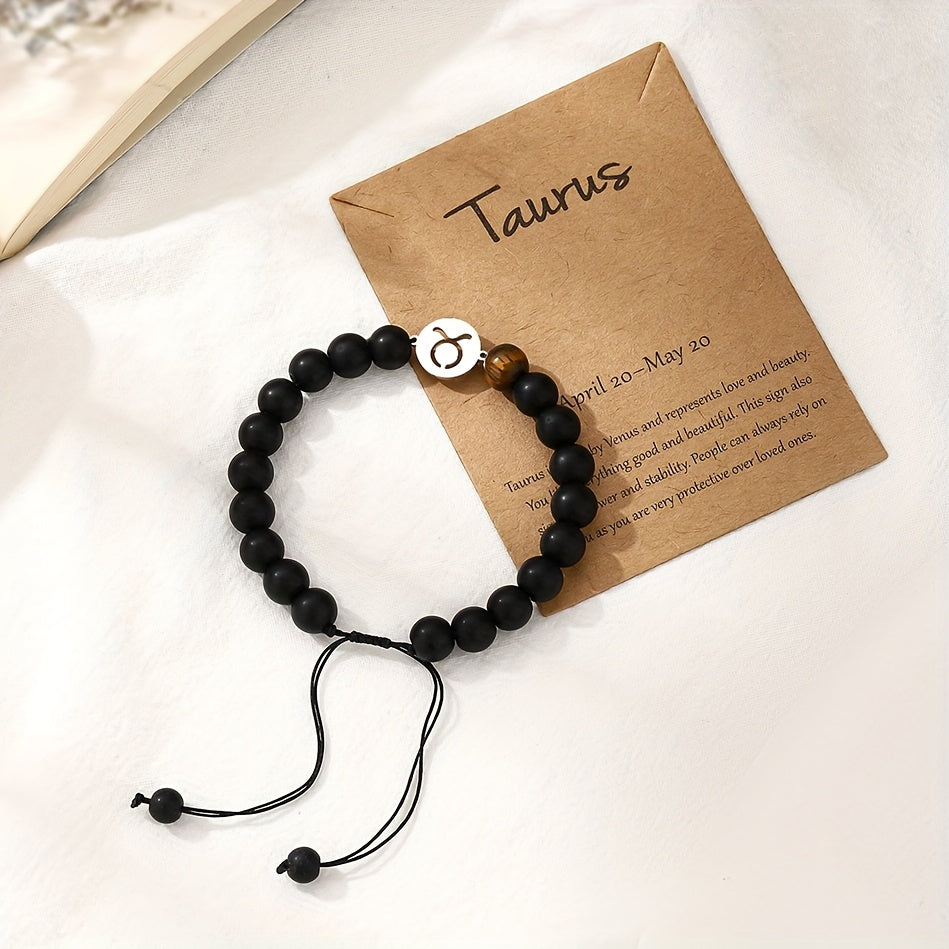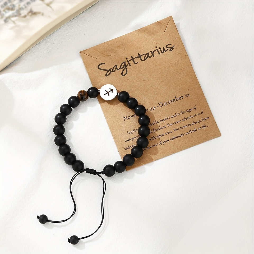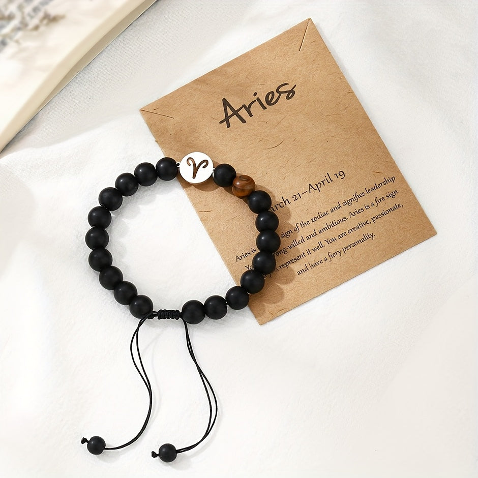 Bracelet Zodiaque en Perles Noires – Ajustable et Élégant