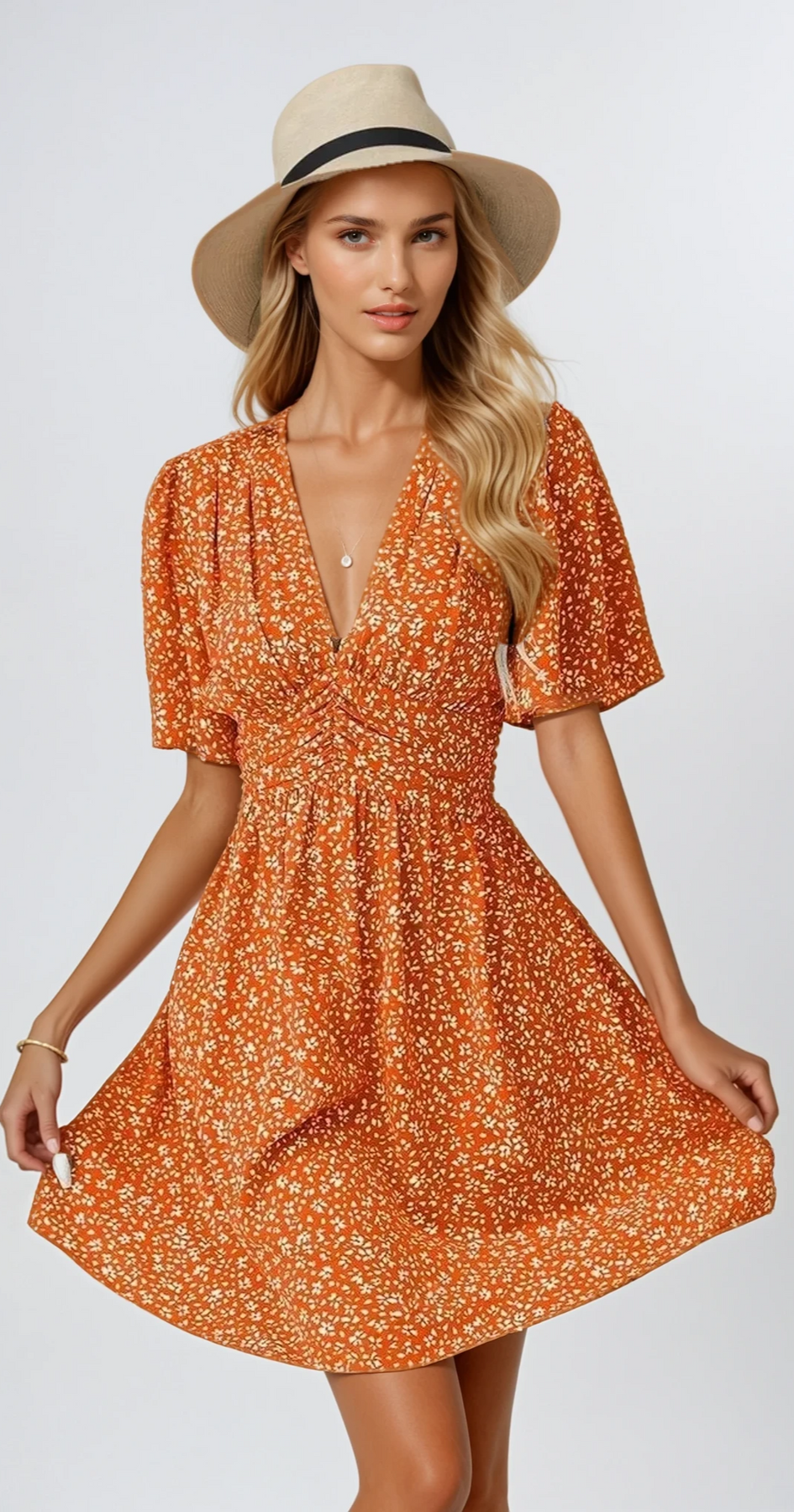 Rayonnez sous le soleil avec Camille, une robe courte au col en V qui allie fraîcheur et élégance. Son imprimé floral délicat et sa coupe légère en font un choix idéal pour une journée ensoleillée, que ce soit pour un brunch, des vacances ou une sortie en ville. Associez-la à des sandales pour un look décontracté ou optez pour des talons pour une touche plus sophistiquée.