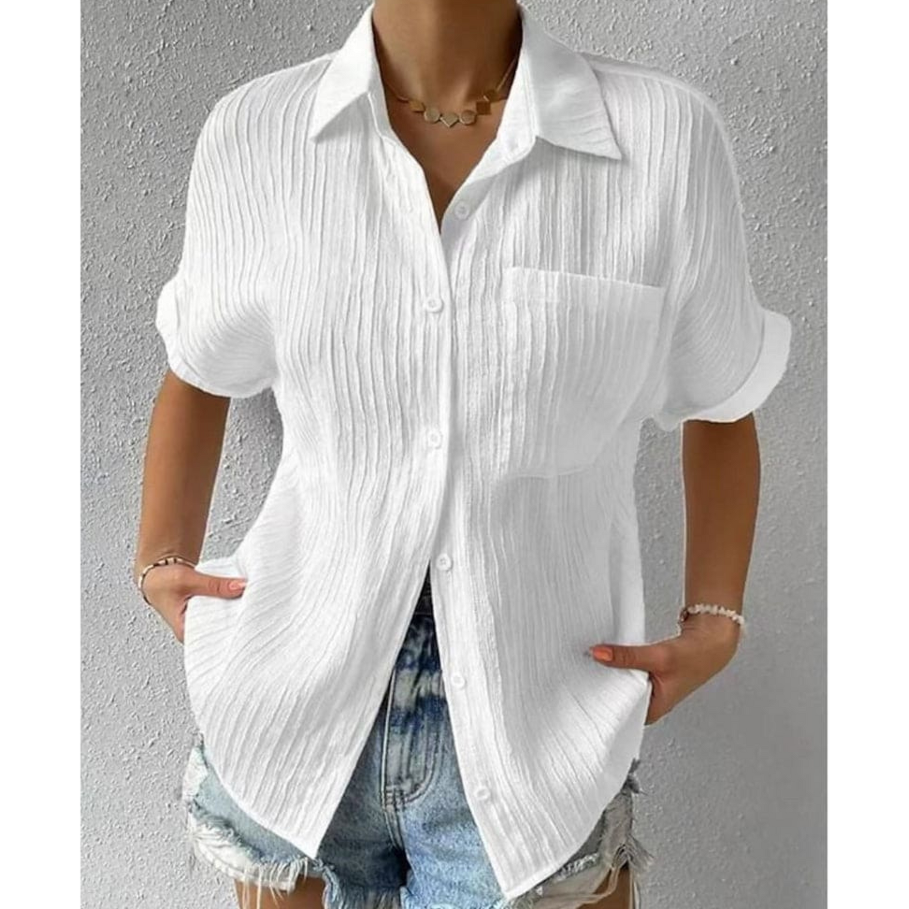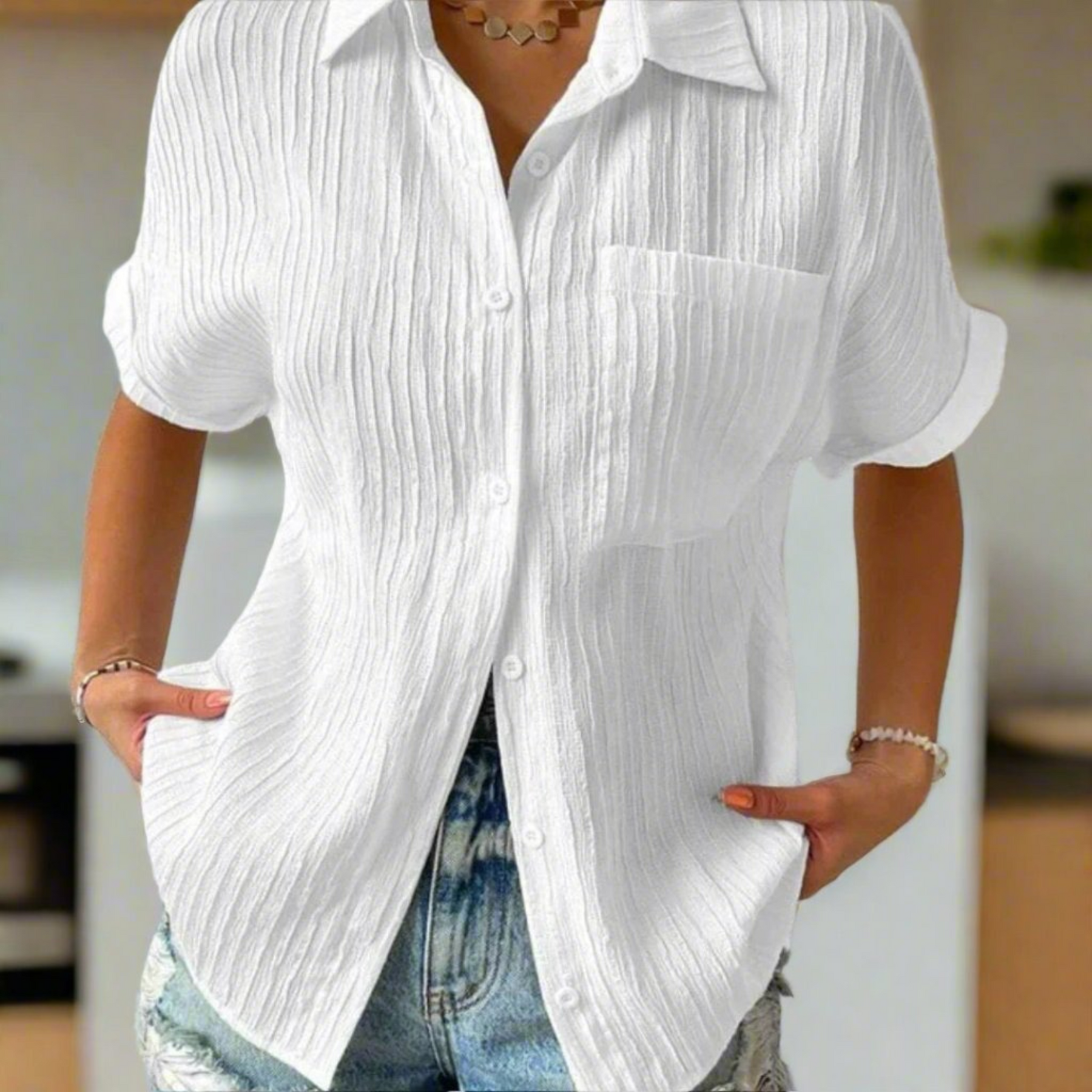 Adoptez un style sobre et pratique avec la blouse Céliane. Son design intemporel, ses manches courtes et sa poche fonctionnelle en font un indispensable pour le quotidien.