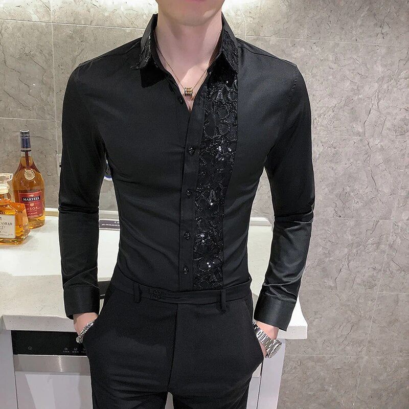 Faites une déclaration de style avec cette chemise élégante pour hommes, un parfait mélange de sophistication et de confort. Sa conception raffinée en dentelle ajoute une touche de distinction à toute occasion. Que ce soit pour une soirée élégante ou un événement décontracté, cette chemise vous accompagne du jour à la nuit avec aisance.