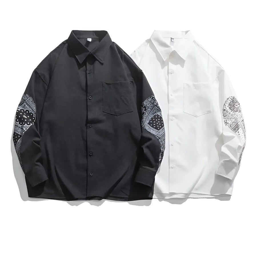 Un modèle moderne à manches longues aux tons unis, rehaussé d'un motif cachemire richement travaillé pour un contraste audacieux. Confectionné dans un tissu respirant, c'est une pièce polyvalente qui se porte aussi bien avec un look formel qu'avec un look décontracté.