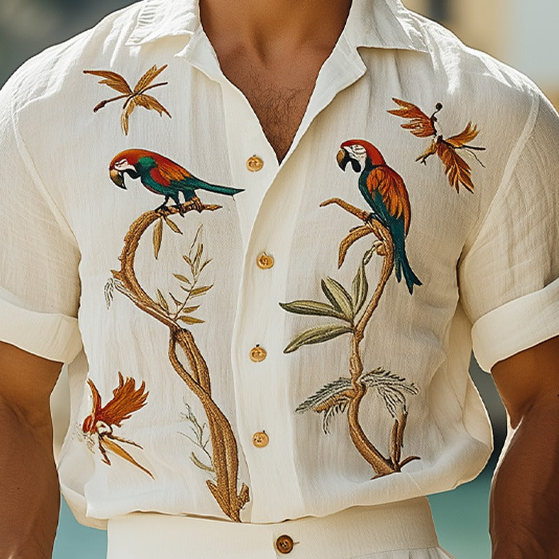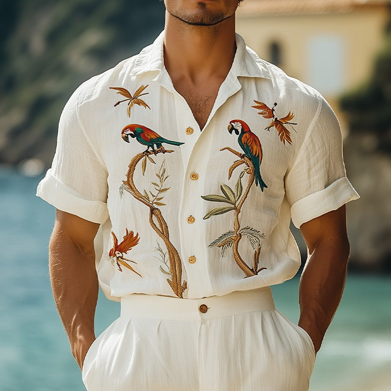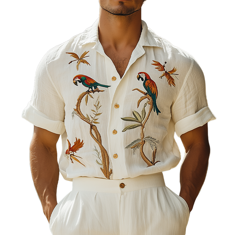 Cette chemise hawaïenne en ramie, avec sa broderie délicate, capture l’essence du voyage et de l’évasion. Légère, aérée et pleine de charme, elle vous transporte directement sous les tropiques, tout en restant chic et confortable.