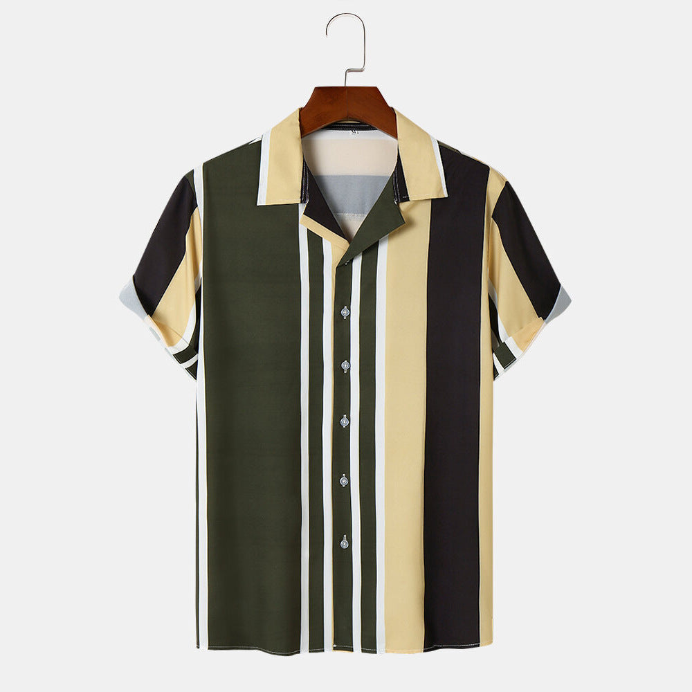 Chemise Homme - Manches Courtes - Rayures Modernes - Col Classique - Style Décontracté