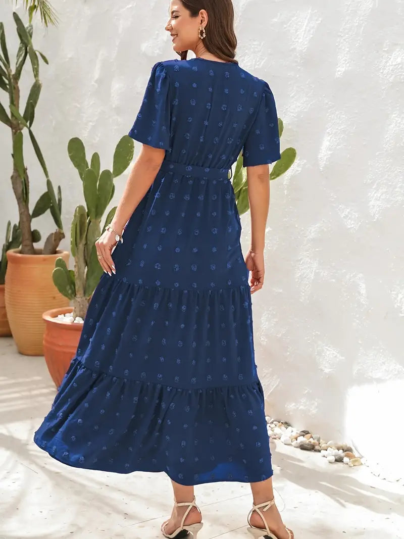Découvrez l'élégance à chaque pas avec cette robe midi évasée qui sublime votre silhouette, tout en apportant une touche de sophistication à votre style quotidien.