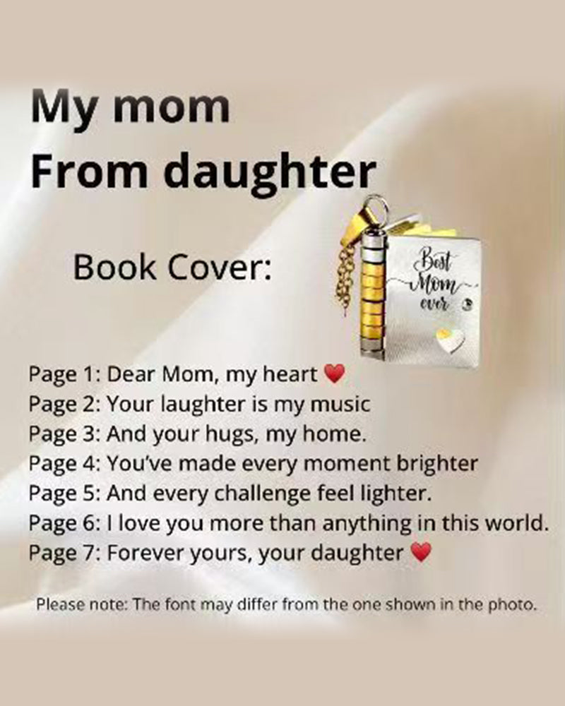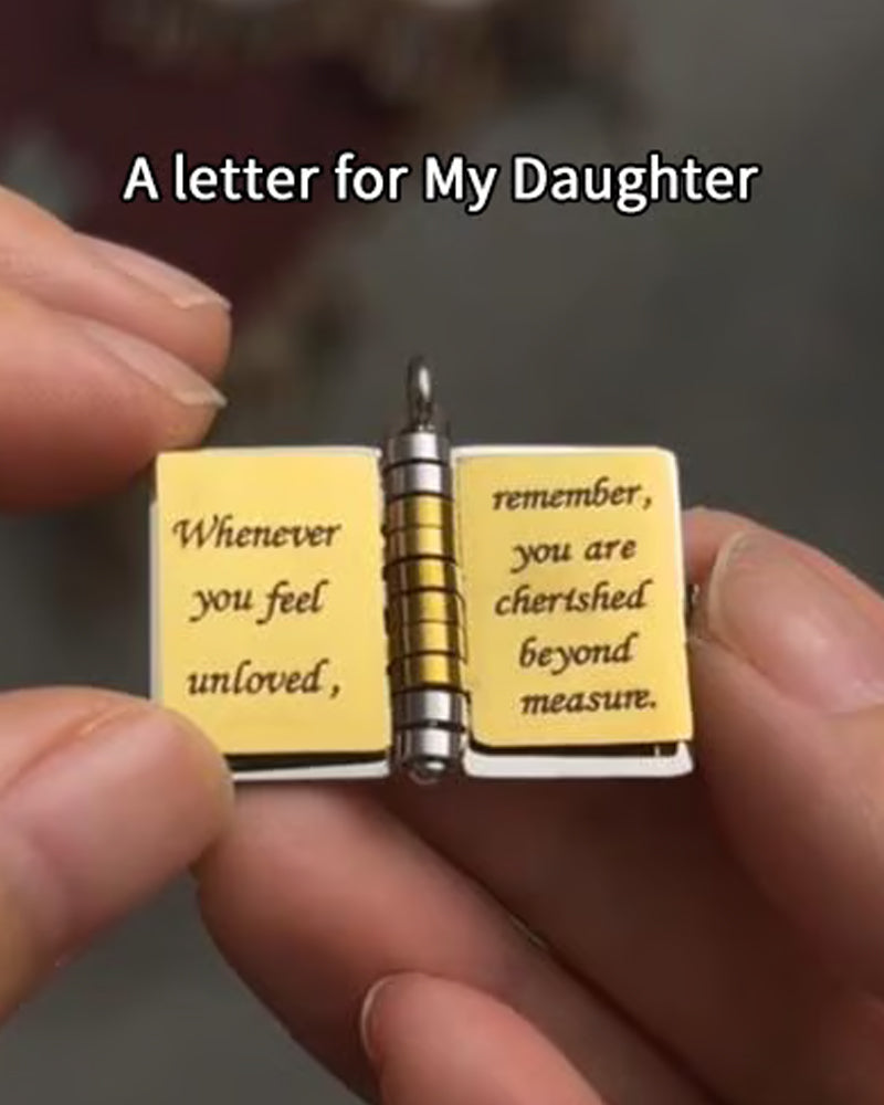 Design : Pendentif livre, qui s'ouvre pour révéler un message spécial, symbolisant l'histoire de vie de votre fille.