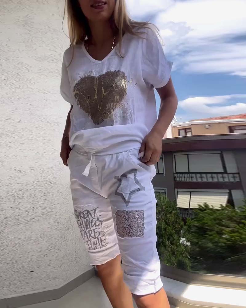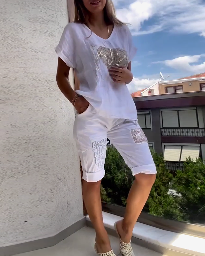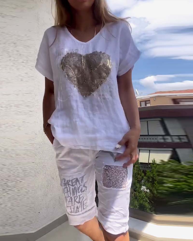 Costume Encolure V Manches Courtes Décontracté