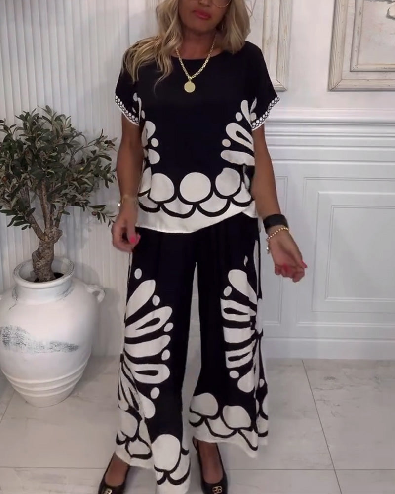 Costume Tempérament Imprimé Poche Pantalon Large