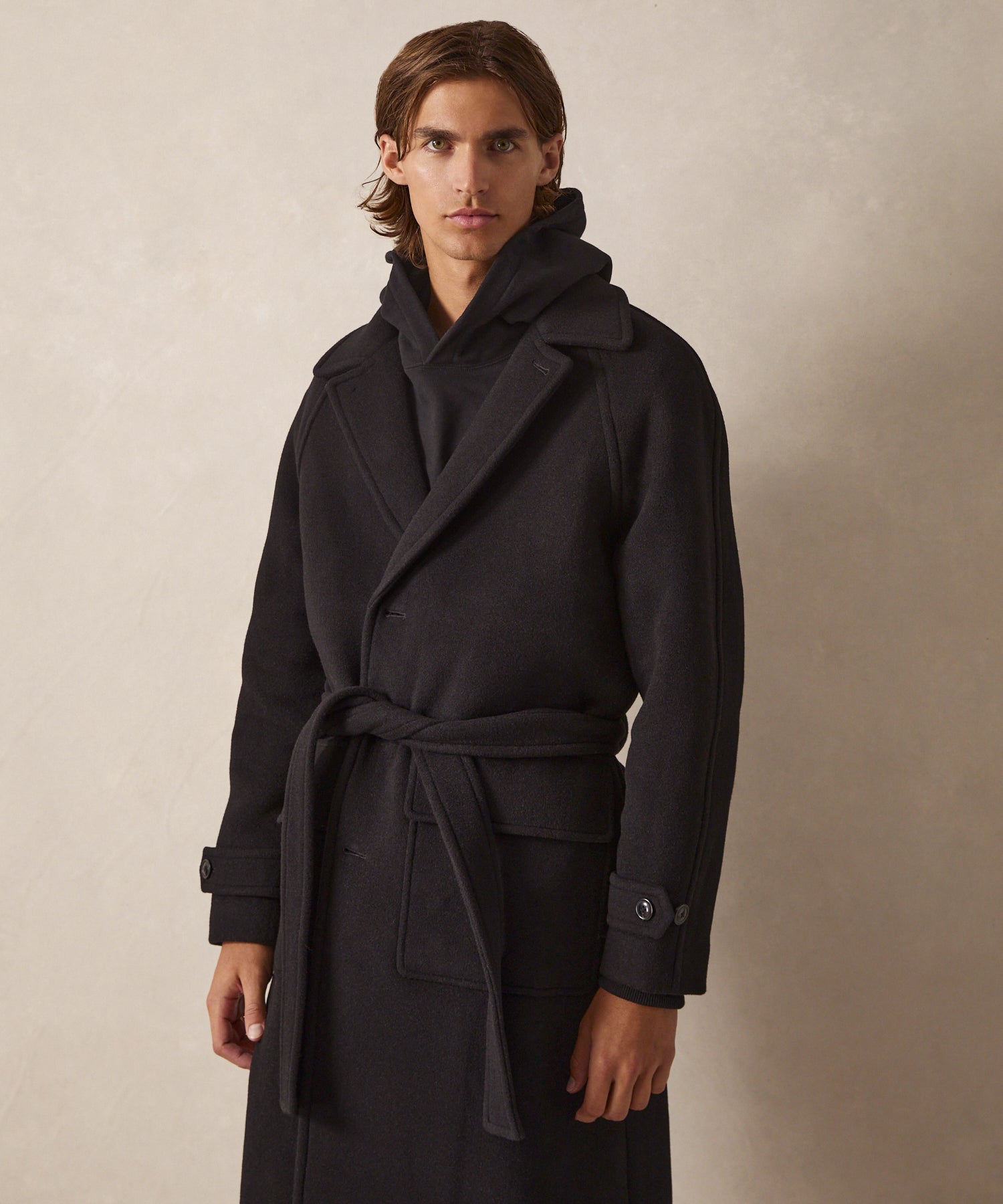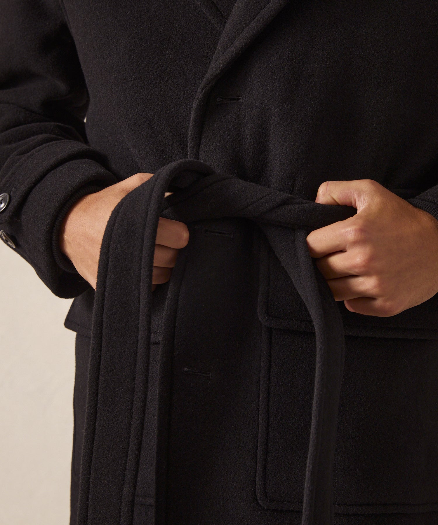 Culhwch | Manteau balmacaan ceinturé en noir pour homme