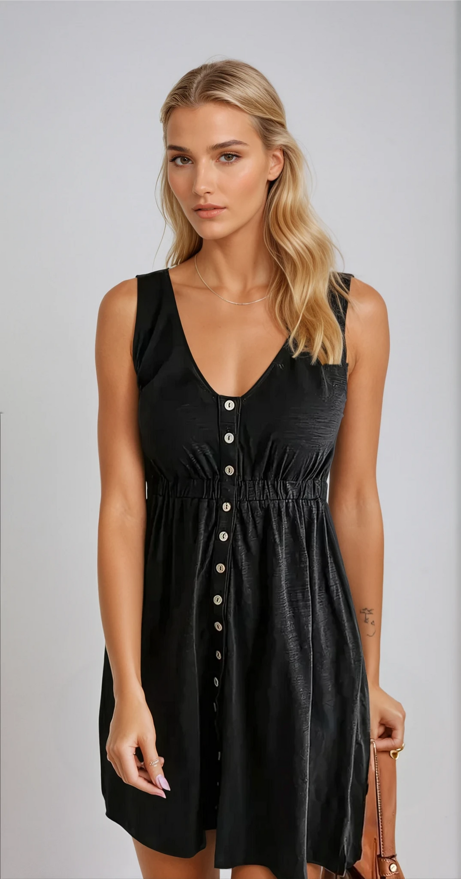 Désirée - Robe d'été à boutons, manches courtes et décolleté en V