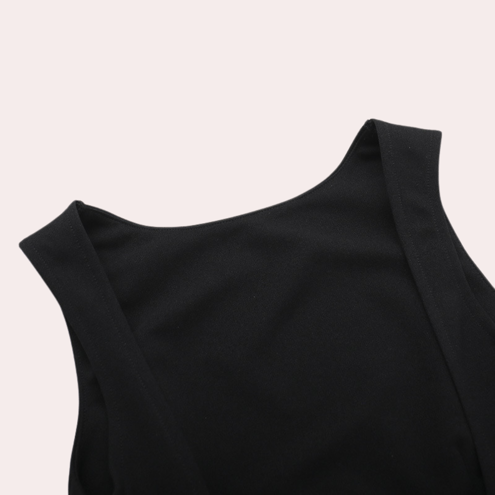 Elli est le parfait allié des journées chaudes, alliant confort et élégance. Sa coupe flatteuse et son dos ouvert en font un choix incontournable pour un look féminin et chic, de jour comme de nuit.