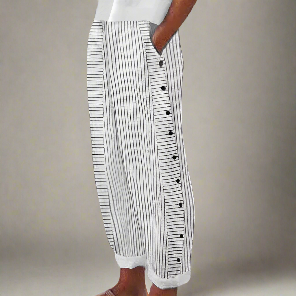 Elodie | Pantalon Taille Haute à Rayures avec Poches Latérales – Polyvalent et Stylé pour le Quotidien