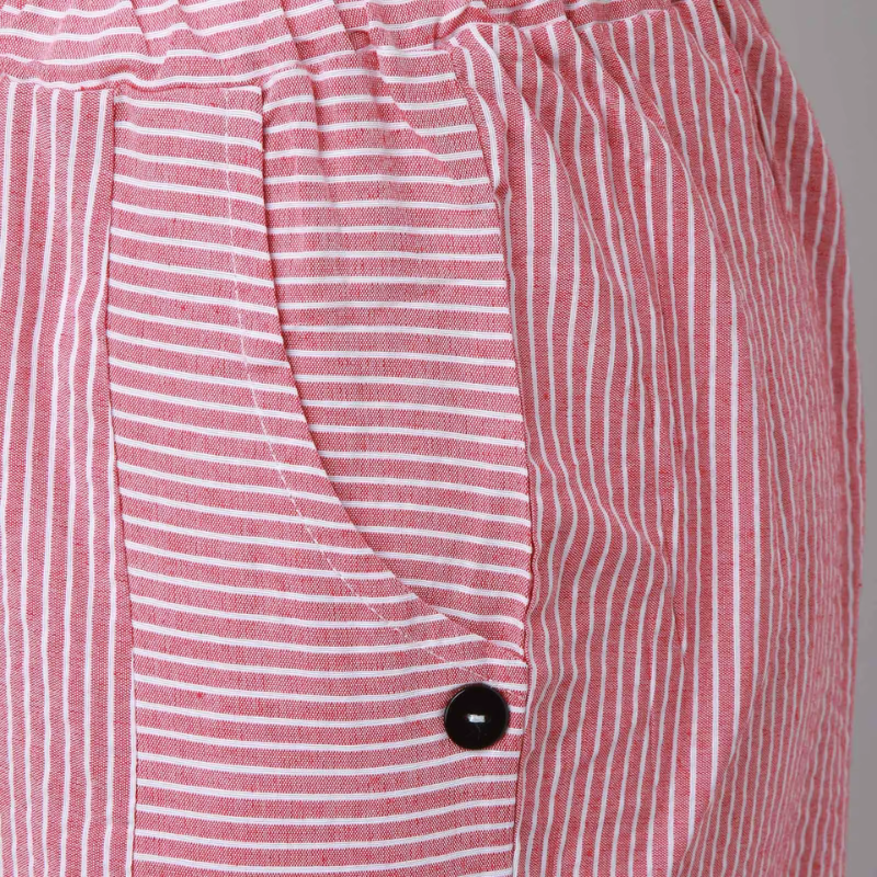 Le pantalon Elodie présente un imprimé rayé moderne et une taille haute, offrant un mélange parfait d'élégance et de polyvalence. Avec une coupe confortable et des poches latérales pratiques, ce pantalon est idéal pour créer des looks chics et décontractés. Fabriqué en polyester léger, il garantit respirabilité et durabilité.
