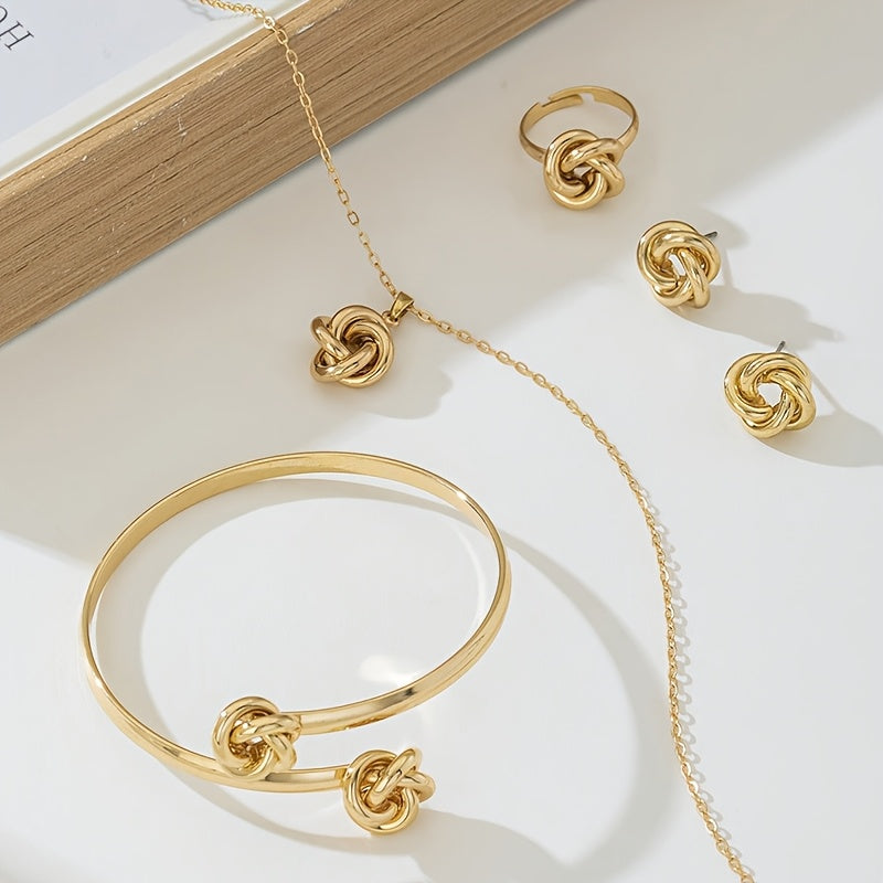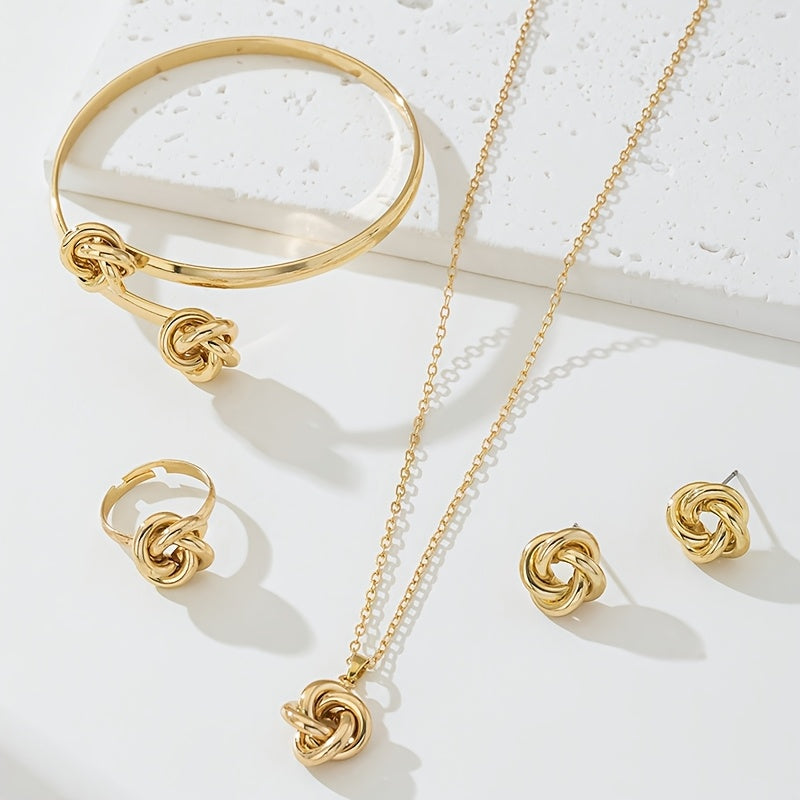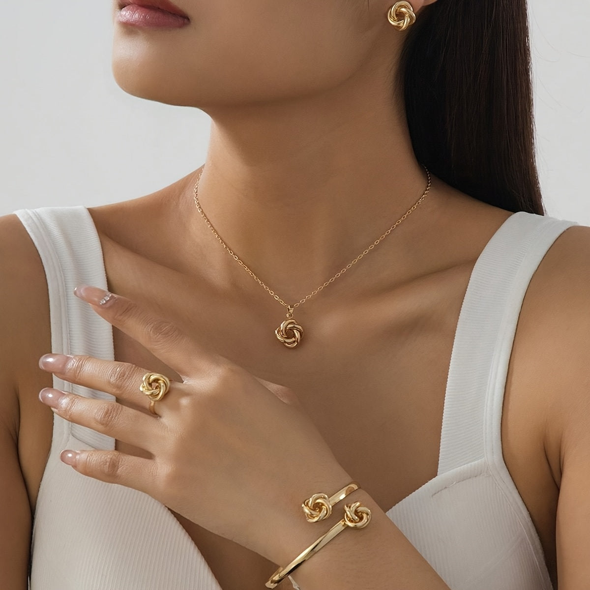 Ensemble élégant 3 pièces – Collier, bracelet et bague motif nœud