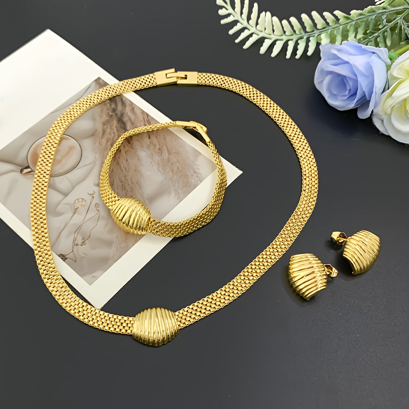 Ensemble élégant 3 pièces – Collier, bracelet et boucles d’oreilles motif coquillage