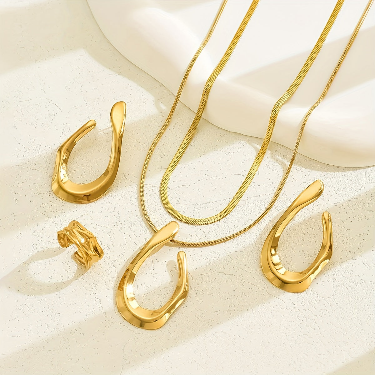 Ensemble élégant 5 pièces – Collier, collier long, boucles d’oreilles, bague et bracelet design moderne