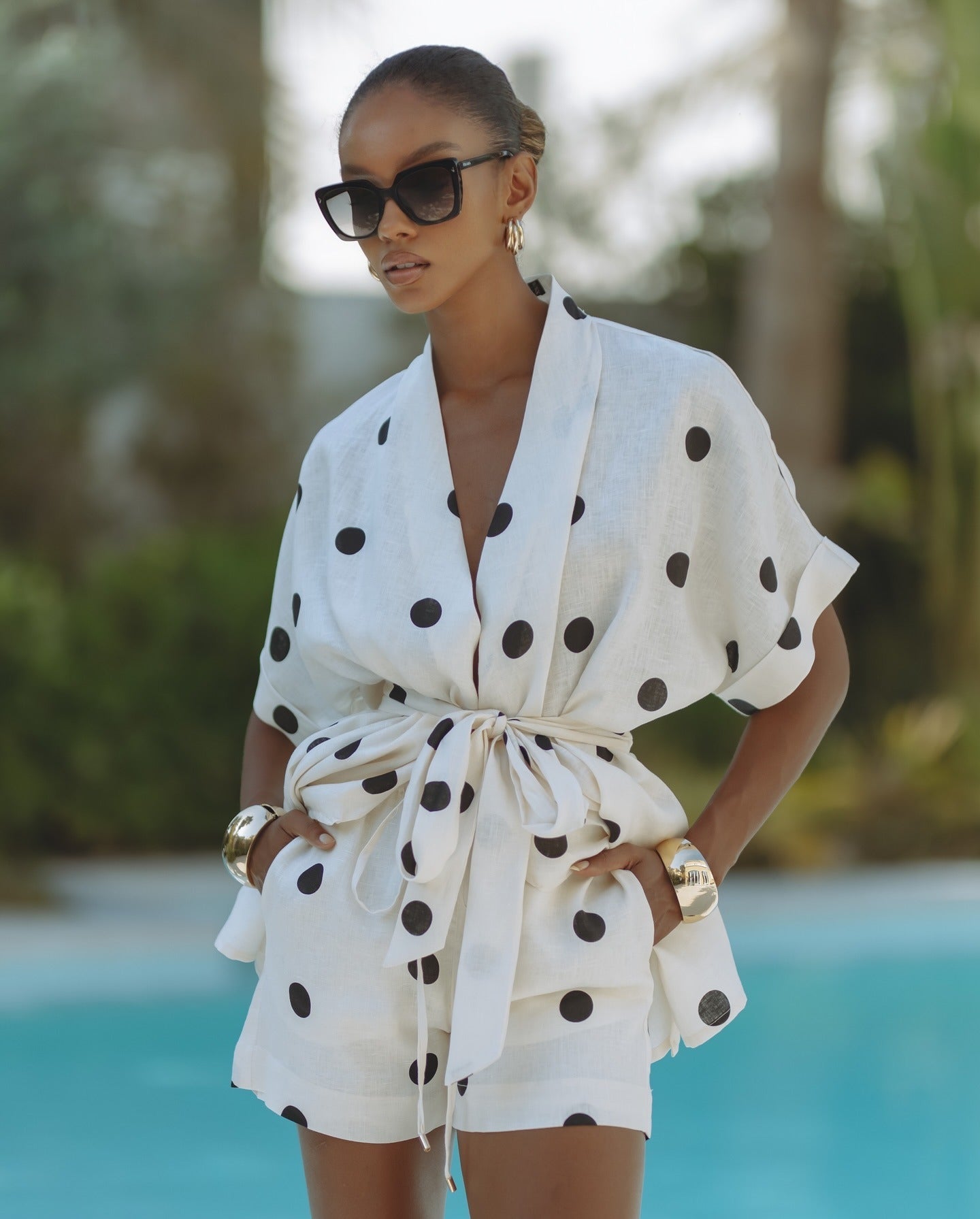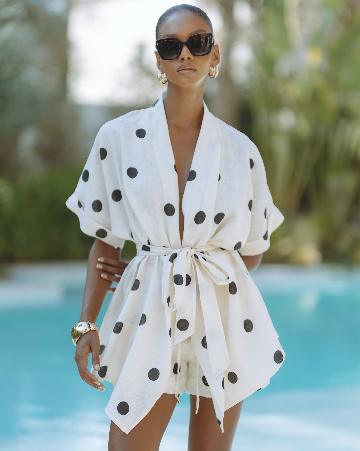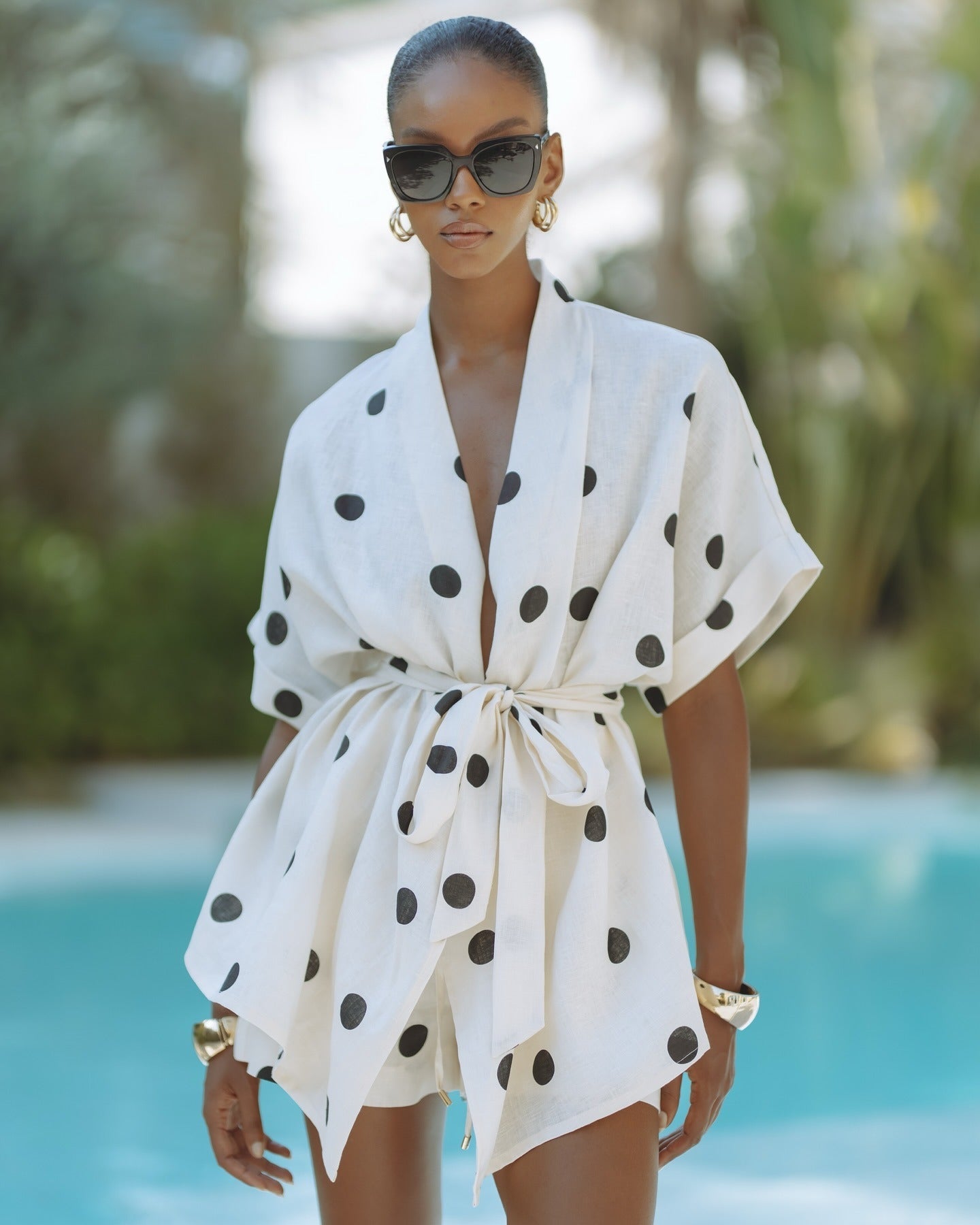 Détails malins : Kimono noué à imprimé pois pour une allure décontractée et chic