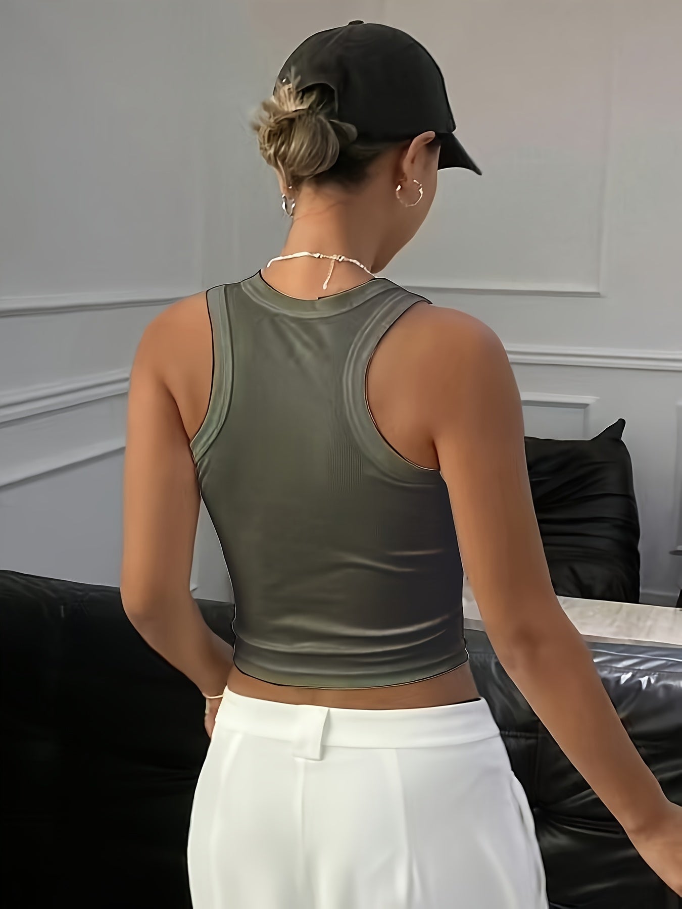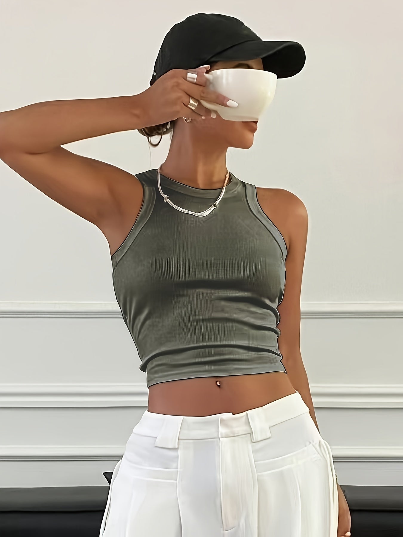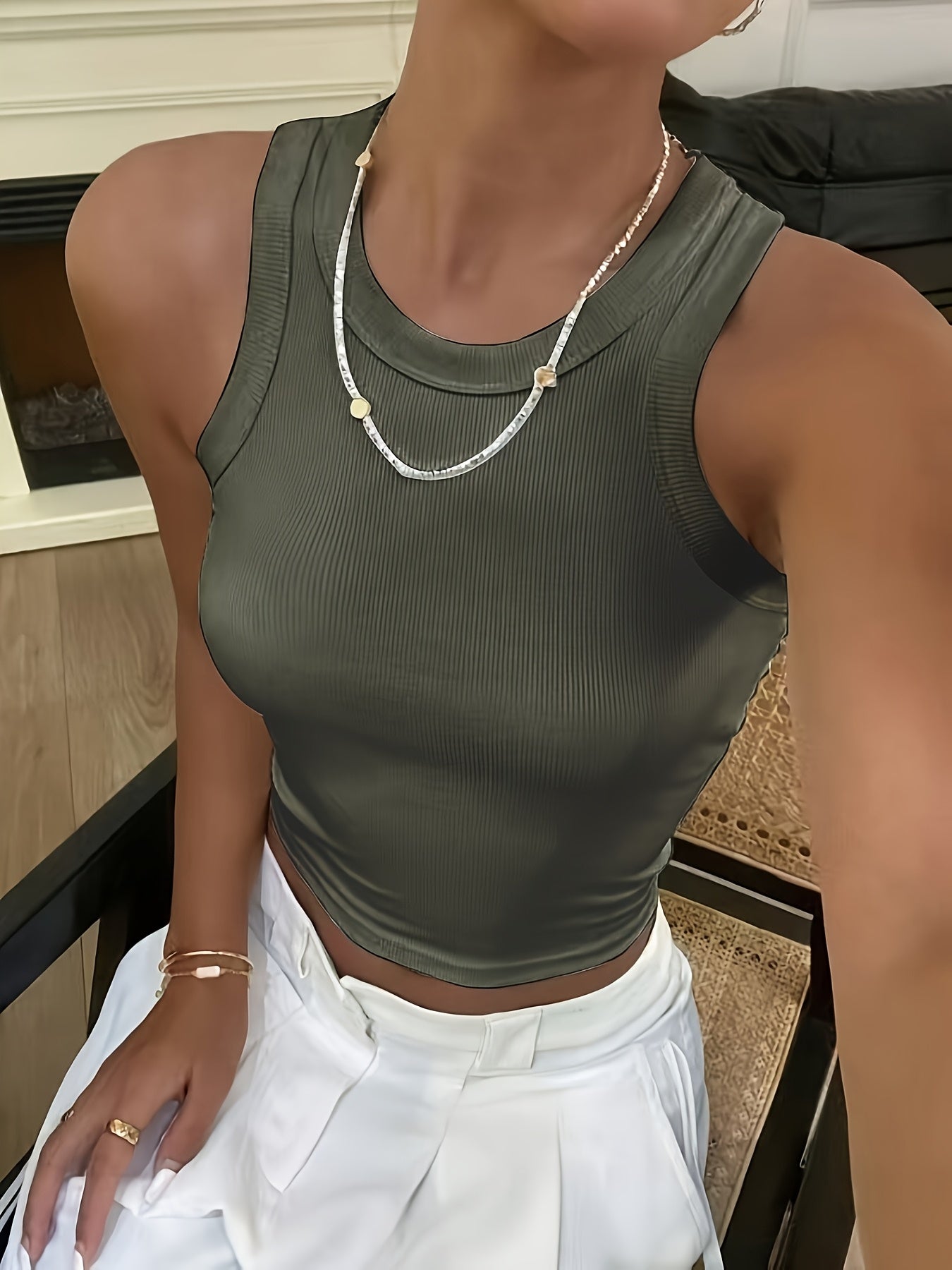 Esme | Crop Top Blanc Femme Sans Manches en Tissu Extensible