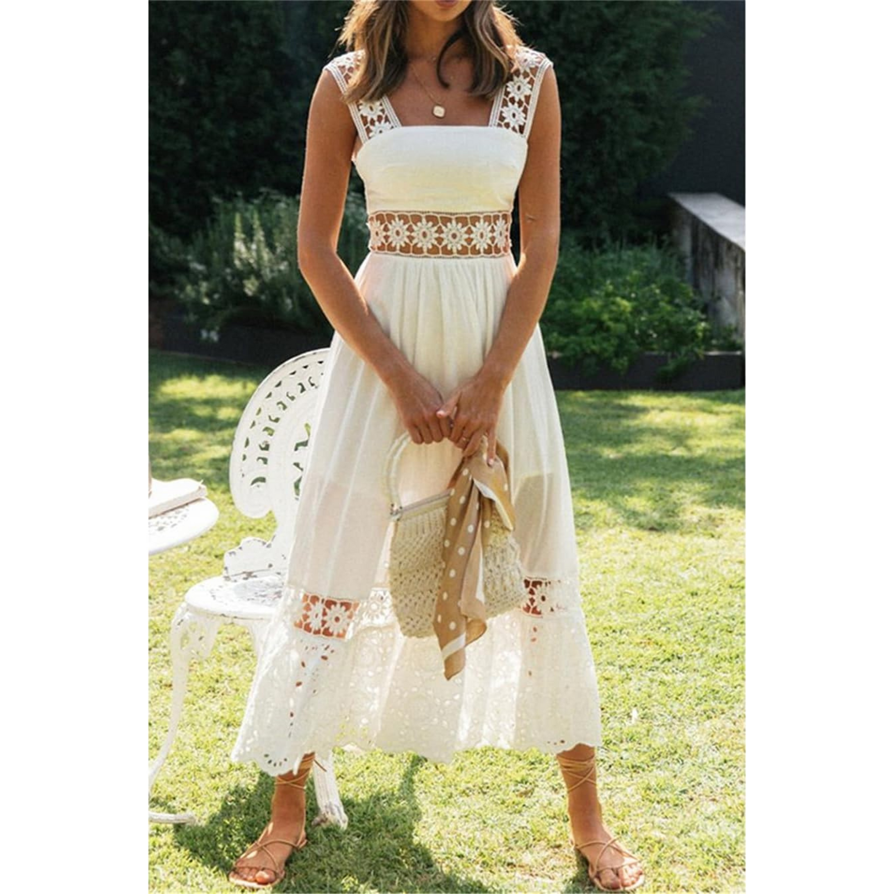 - Design bohème : Haut ajusté et jupe évasée pour un effet fluide.
