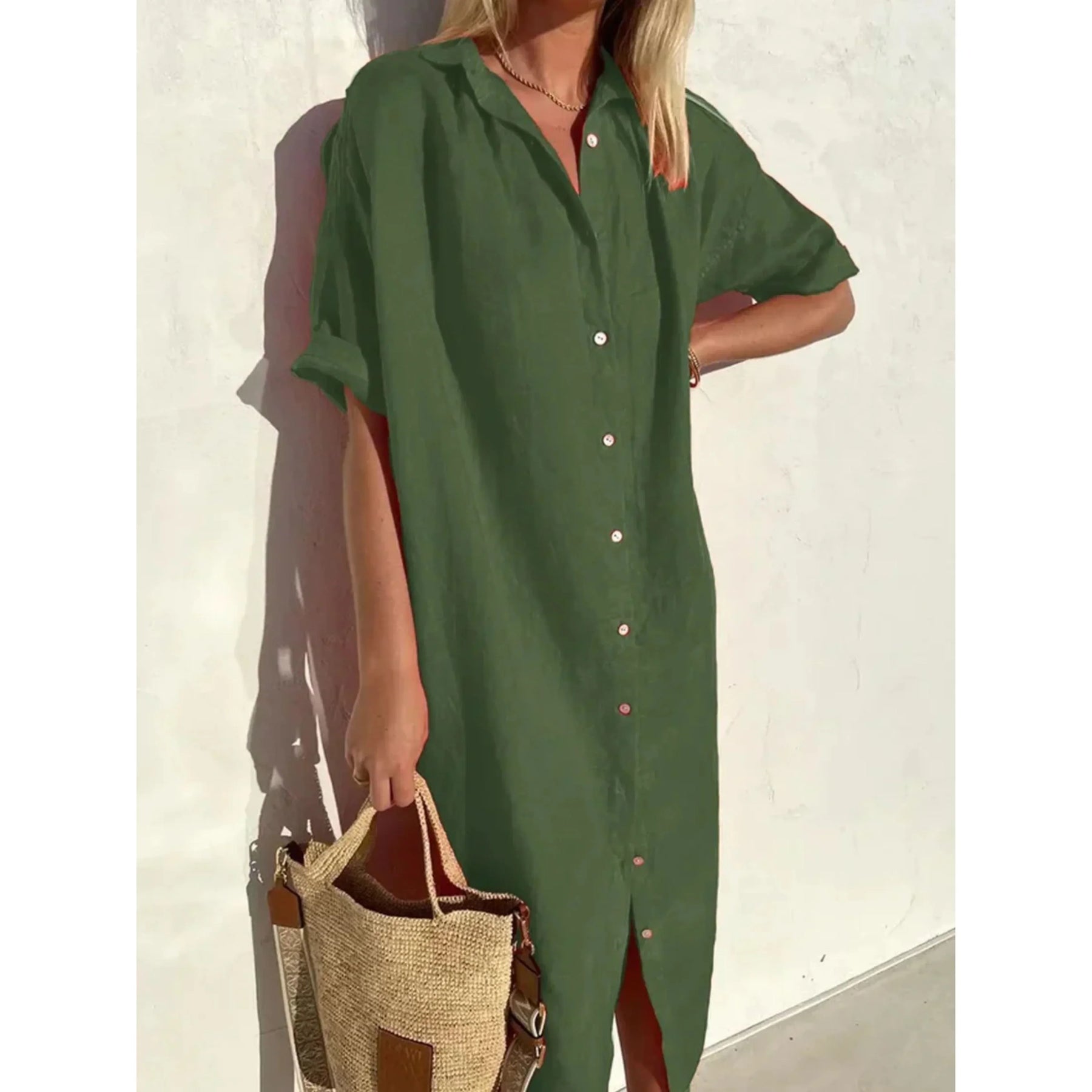 Affichez une allure raffinée avec cette robe à manches amples et boutons, idéale pour les journées ensoleillées. Sa coupe fluide assure un confort optimal, tout en s’adaptant facilement à diverses occasions. Associez-la à vos accessoires préférés pour un look unique et tendance.