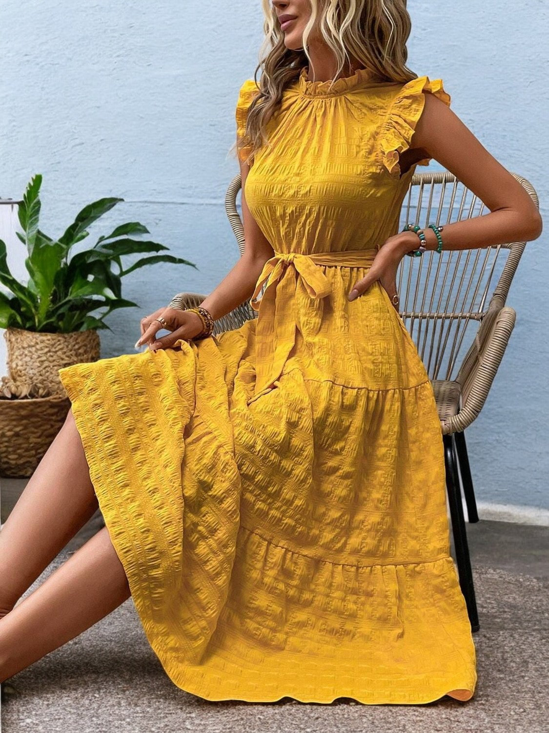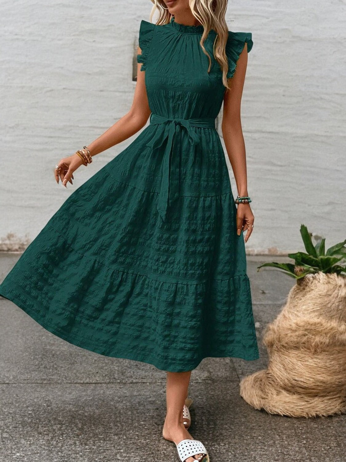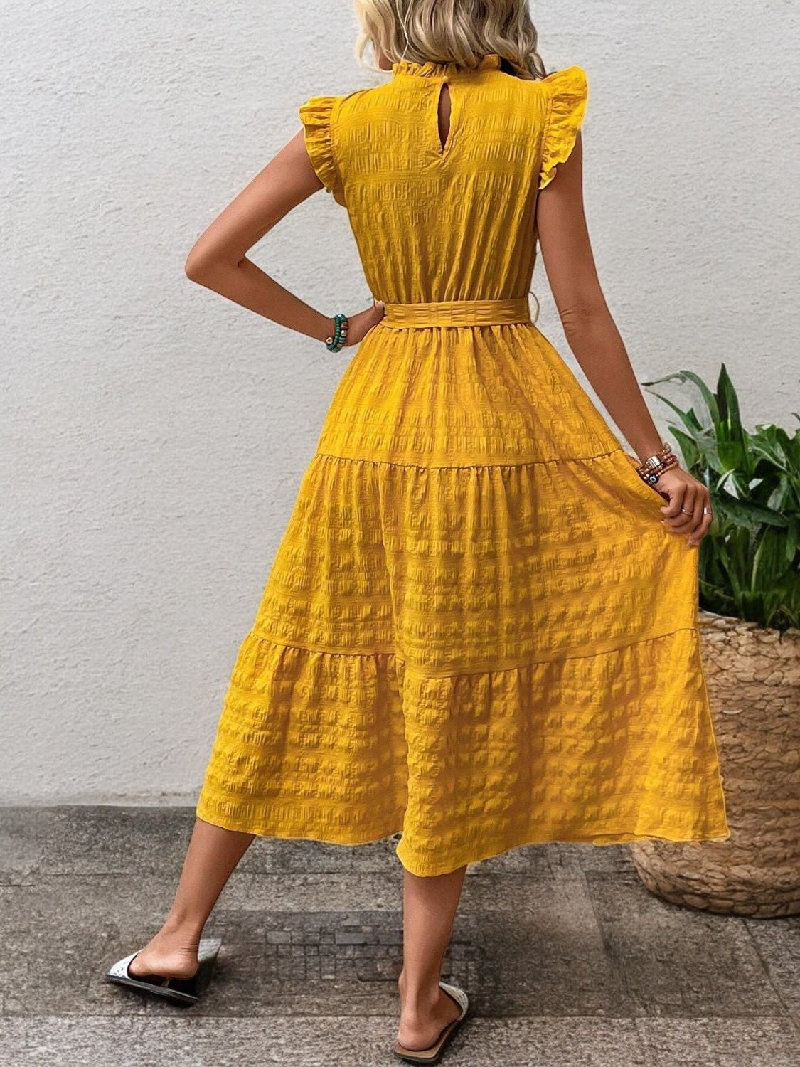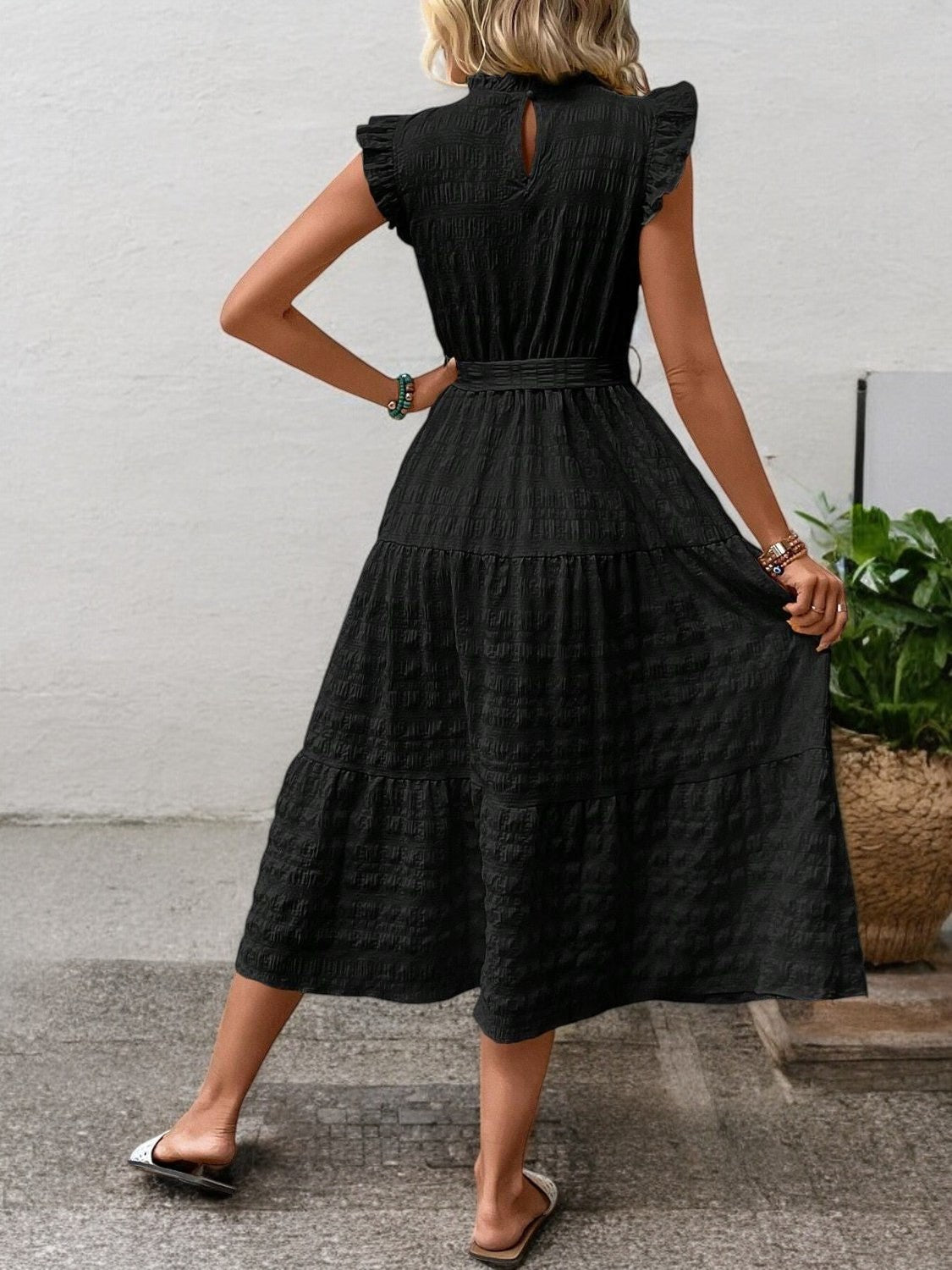 Gisèle - Robe midi à ourlets volantés et ceinture à nouer