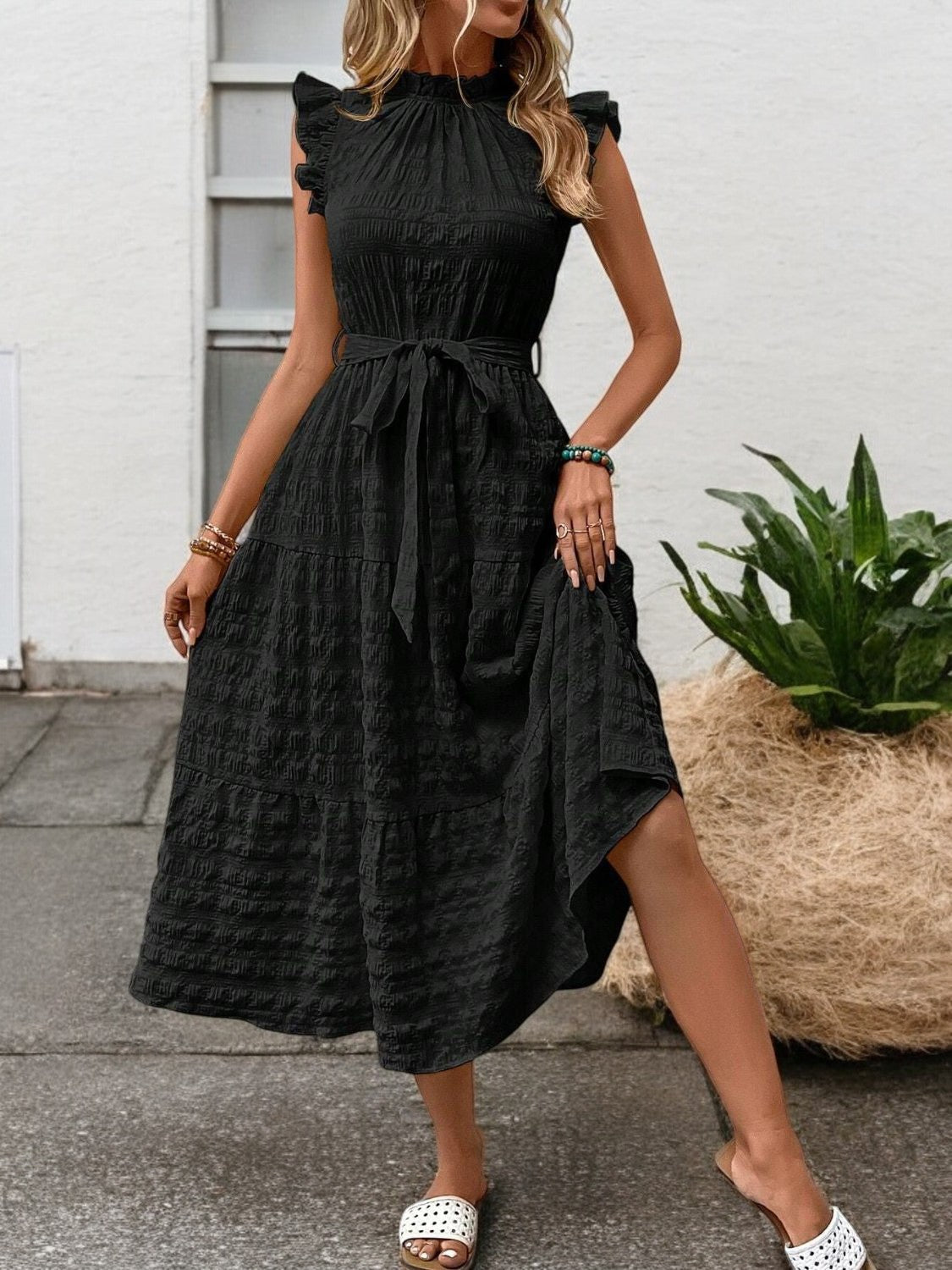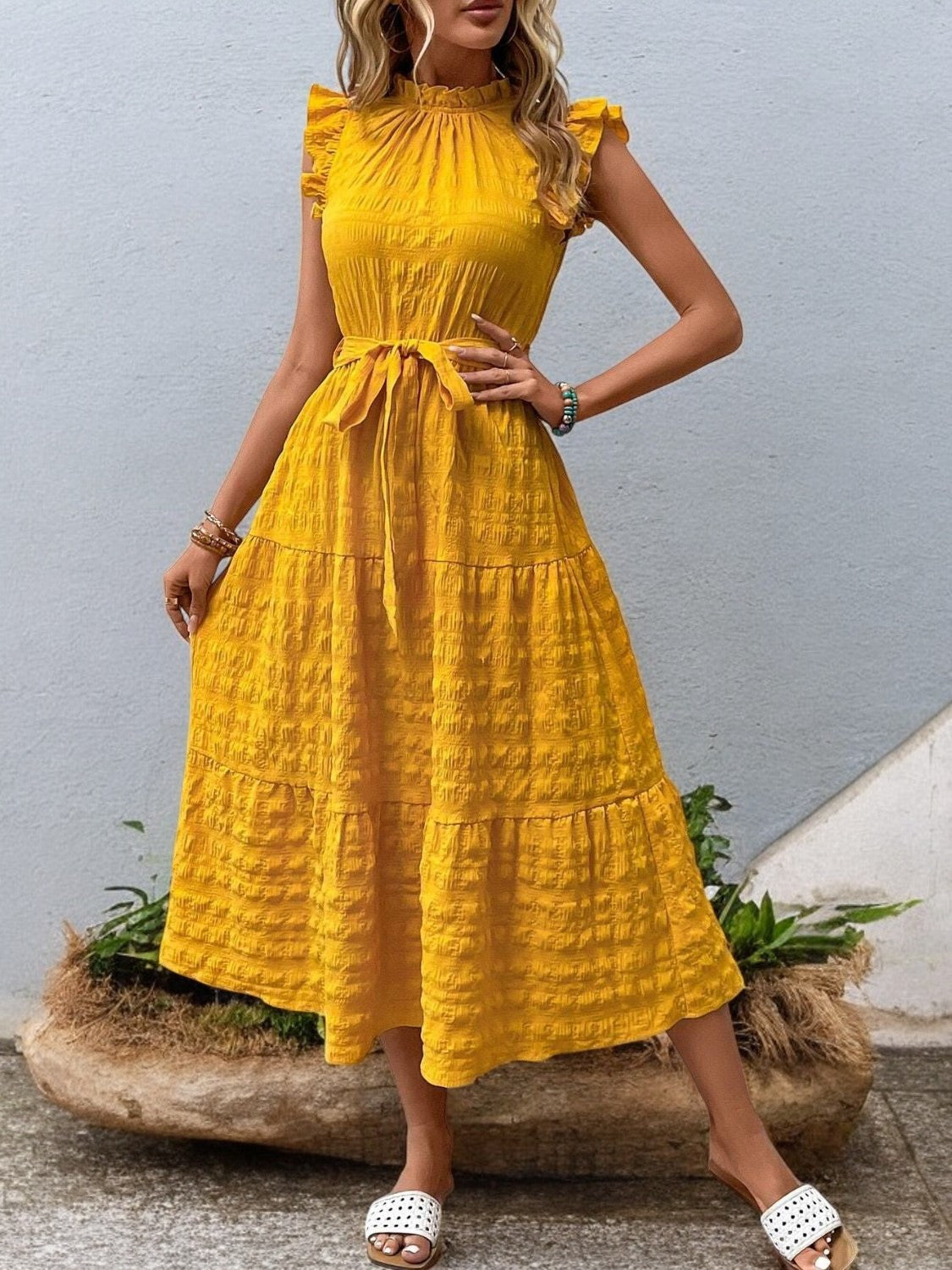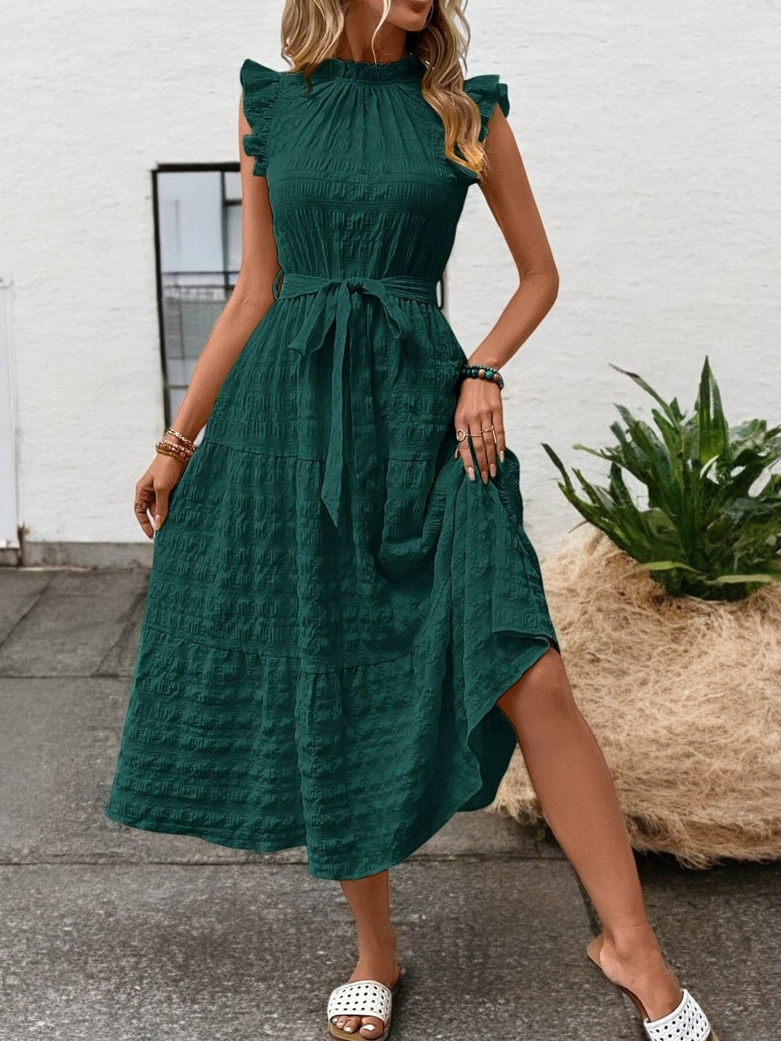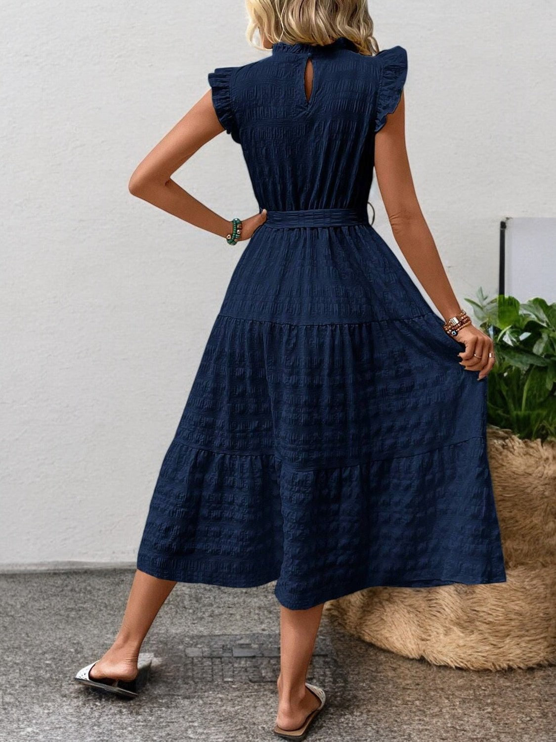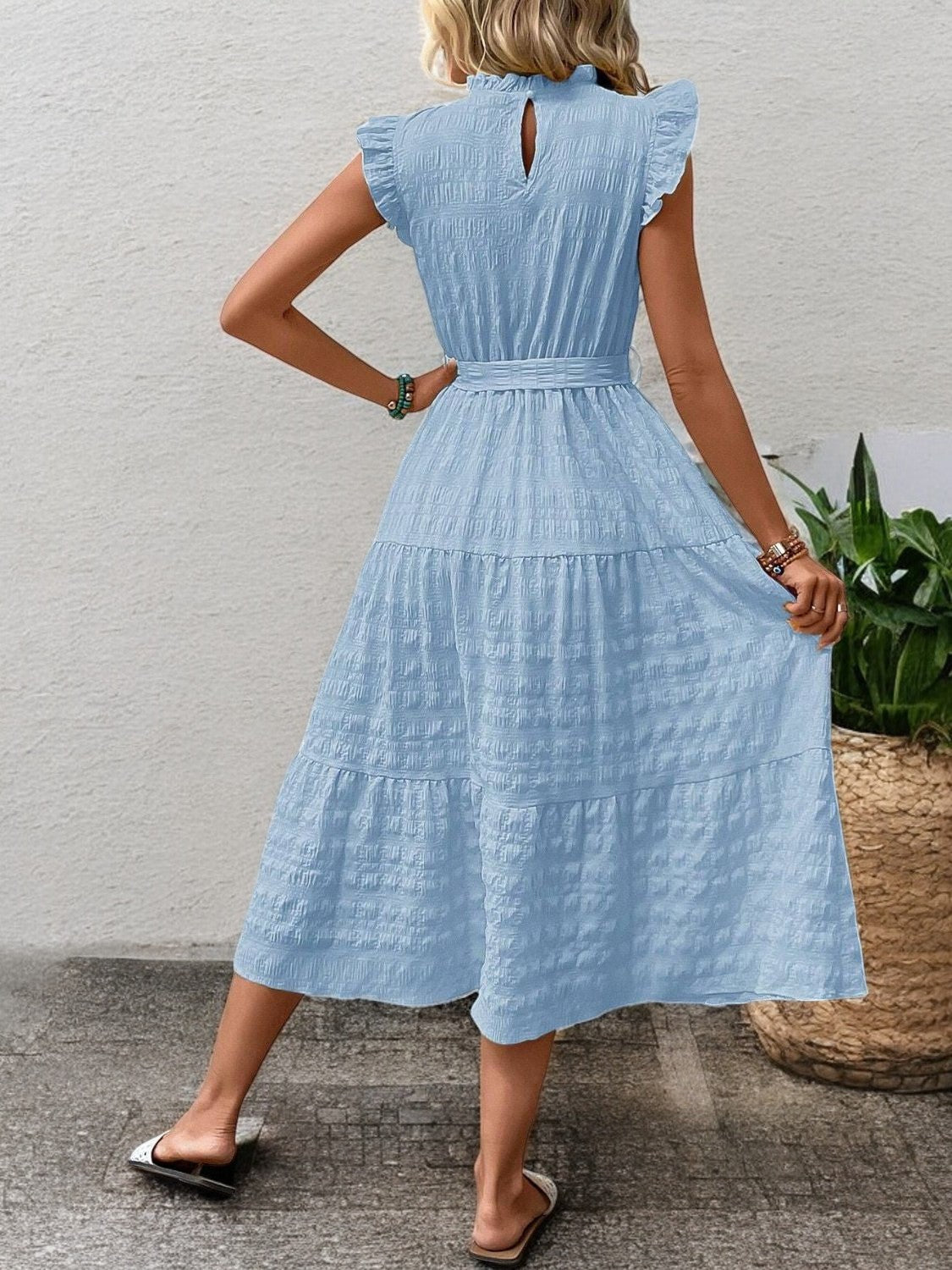Gisèle - Robe midi à ourlets volantés et ceinture à nouer