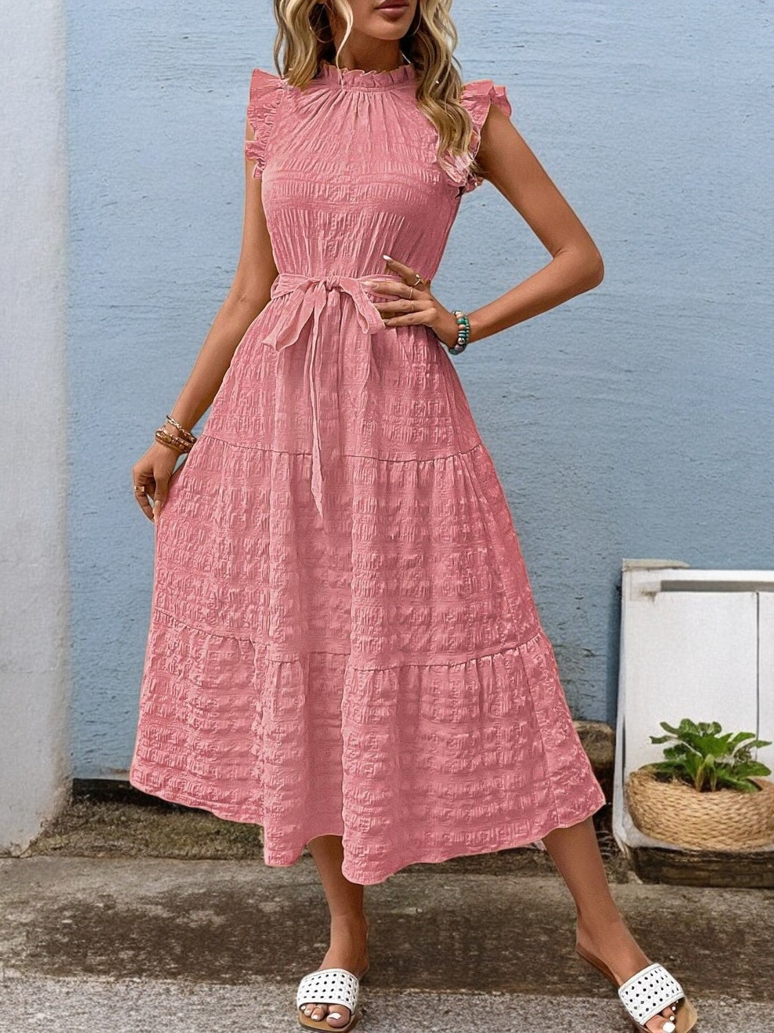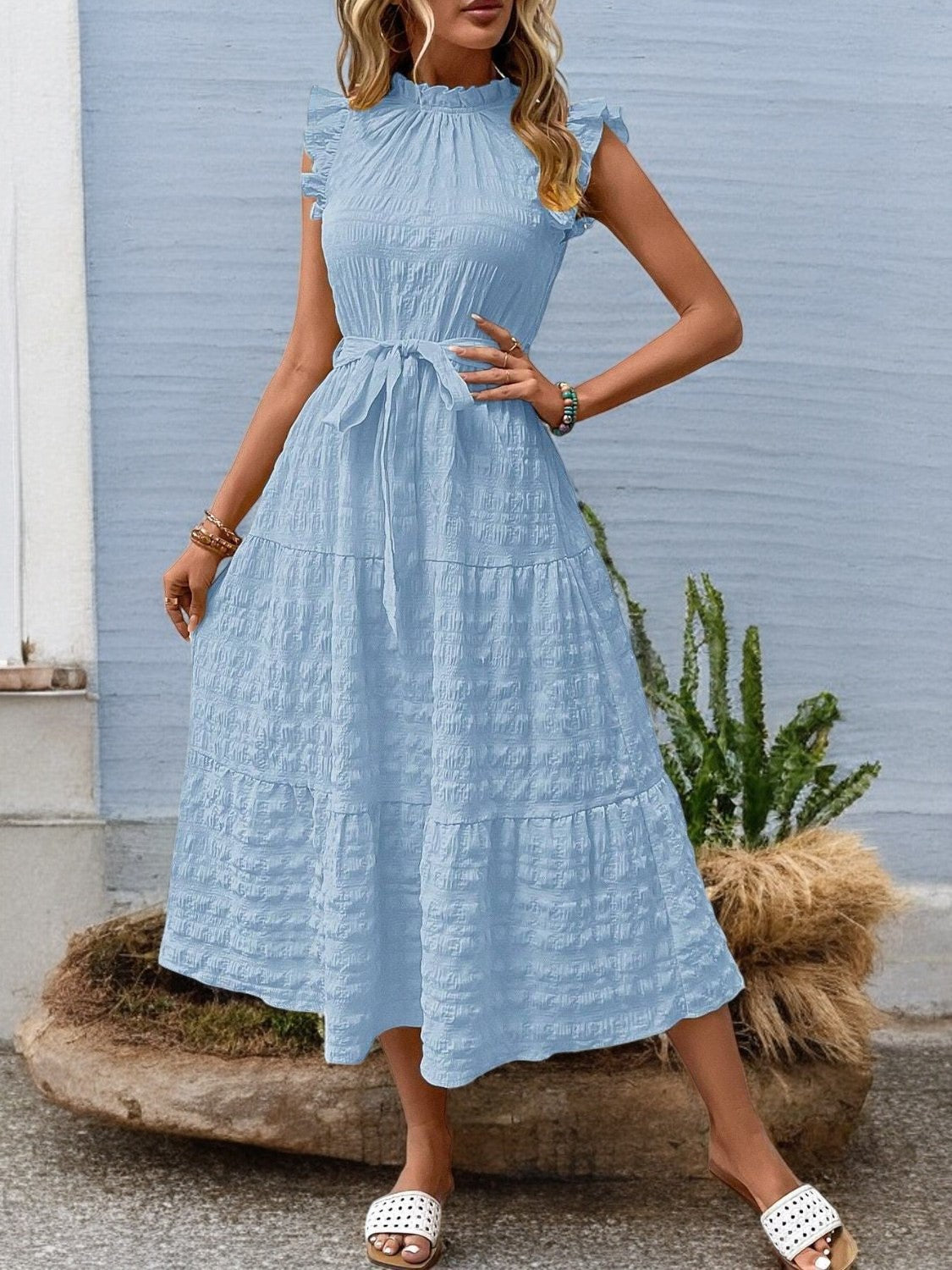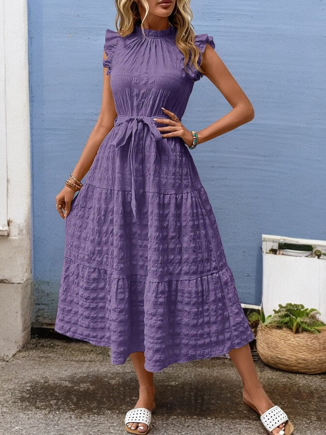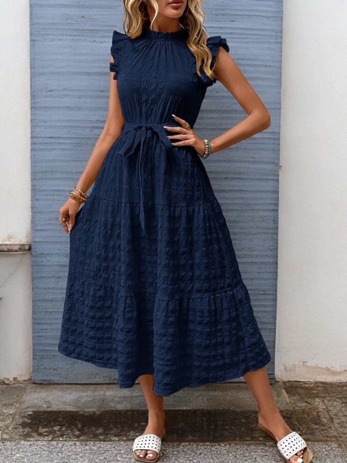 Gisèle - Robe midi à ourlets volantés et ceinture à nouer