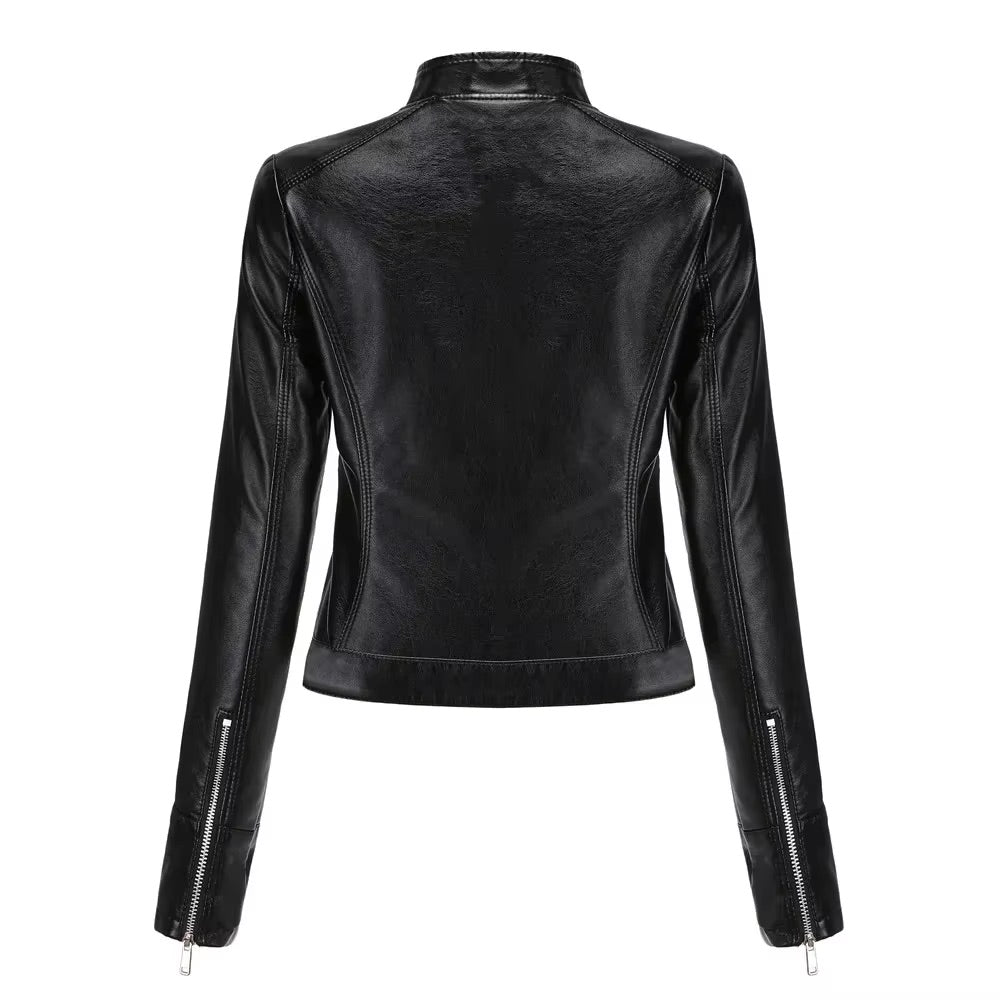 Gisèle | Veste en Cuir Ajustée pour Femmes avec Col Montant