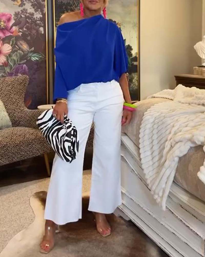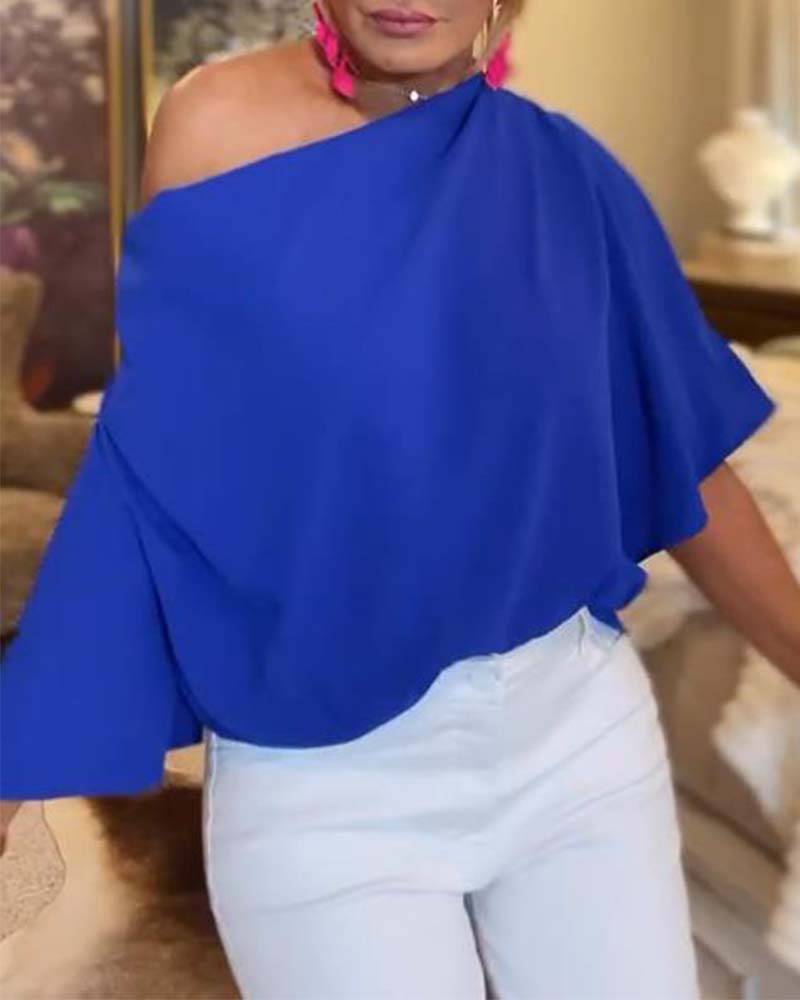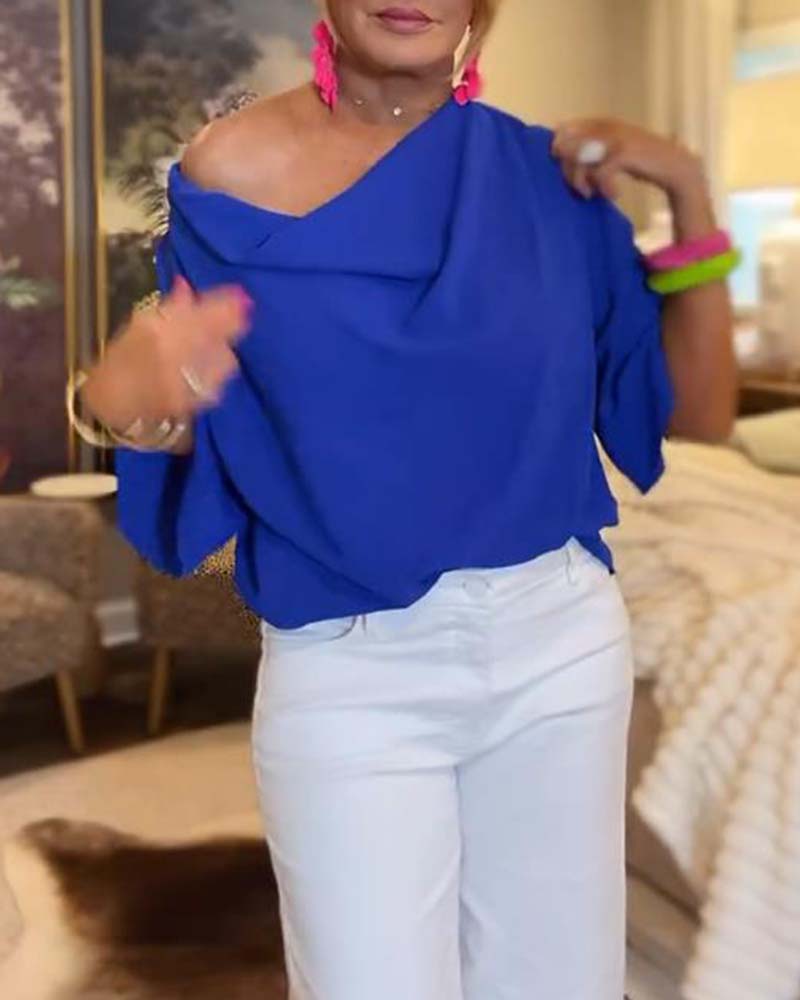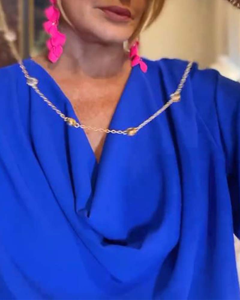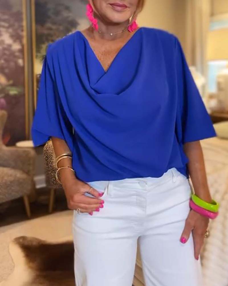 Haut avec Short - Sleeved Elegant Draped - Neck Style