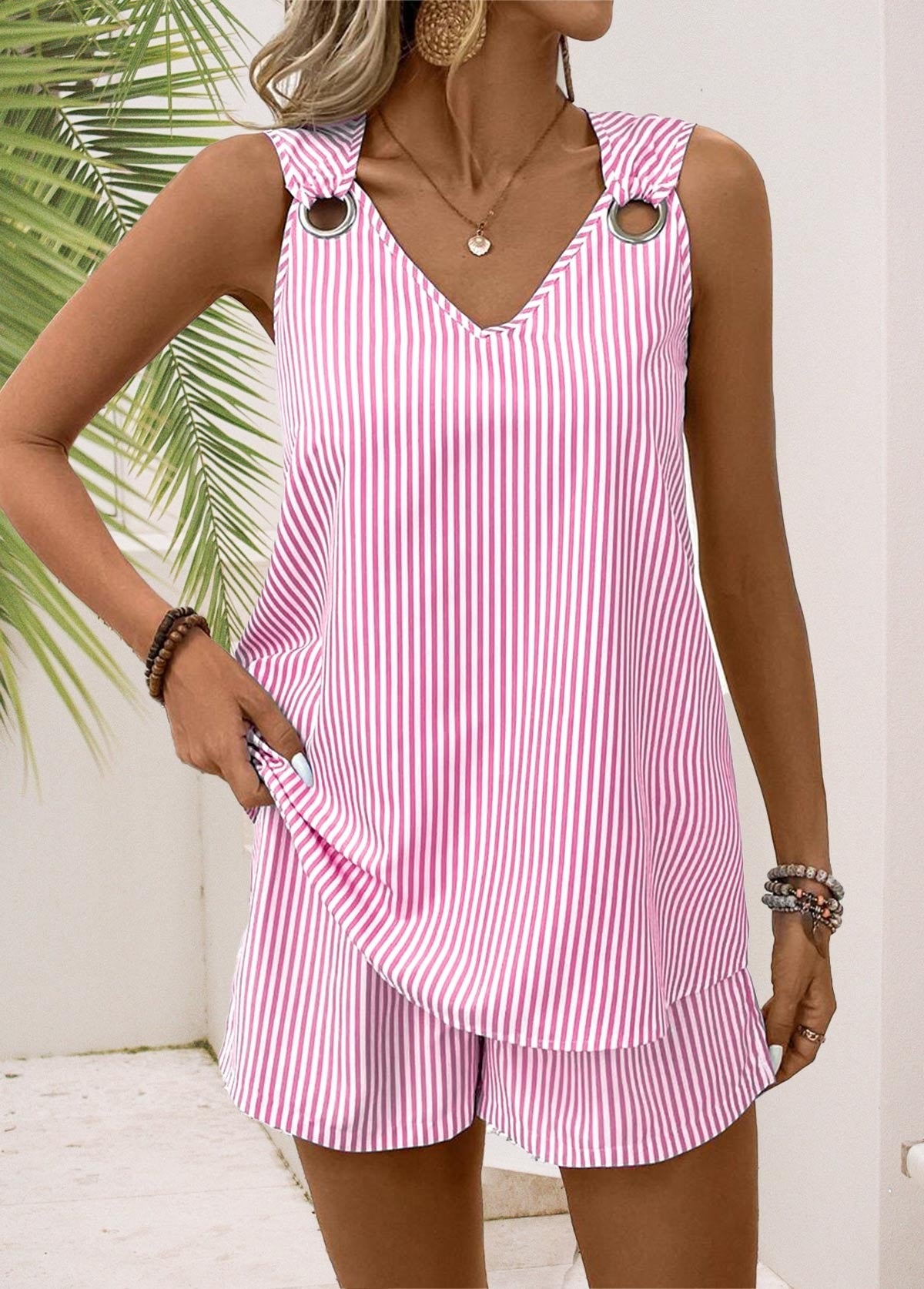 À la fois frais, stylé et facile à porter, cet ensemble rayé incarne l’esprit des journées d’été insouciantes. Le haut sans manches apporte de la légèreté, tandis que le short structuré donne une touche dynamique — l’équilibre parfait entre confort et allure.