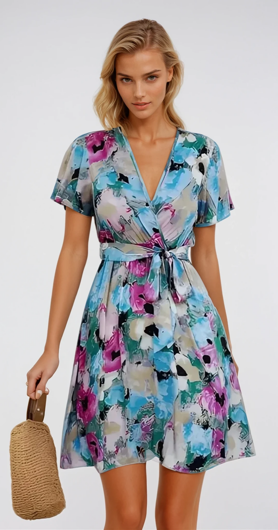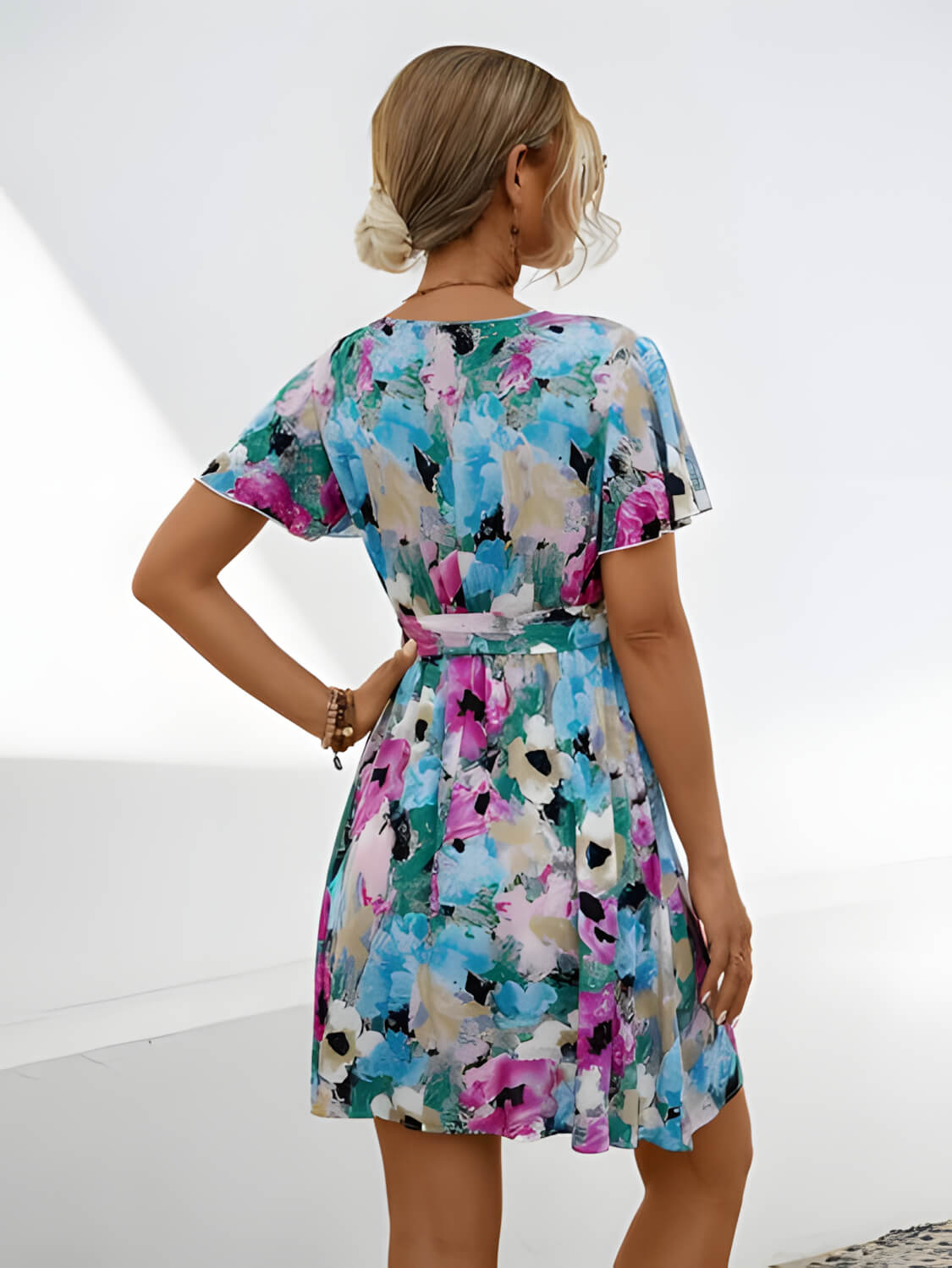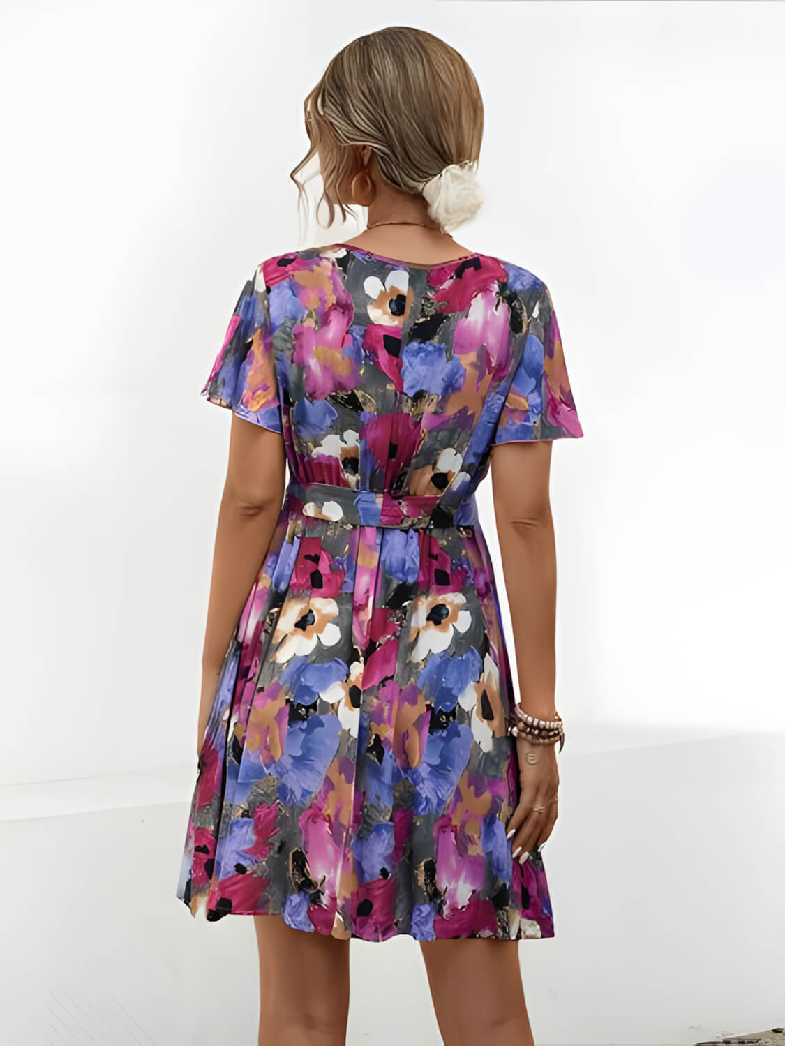 Hélène - Mini robe avec ceinture à la taille et motif floral