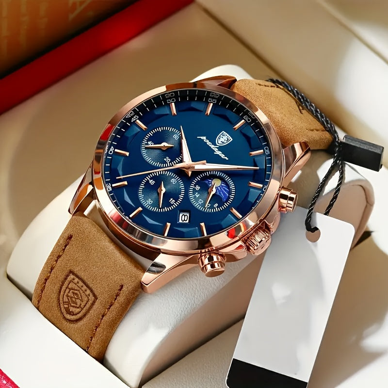 Henri™ allie le charme du design classique à la praticité du quotidien. Avec son bracelet en cuir PU souple, son boîtier en alliage raffiné et son mouvement à quartz fiable, cette montre t’offre une allure soignée tout en restant confortable à porter, du matin au soir.