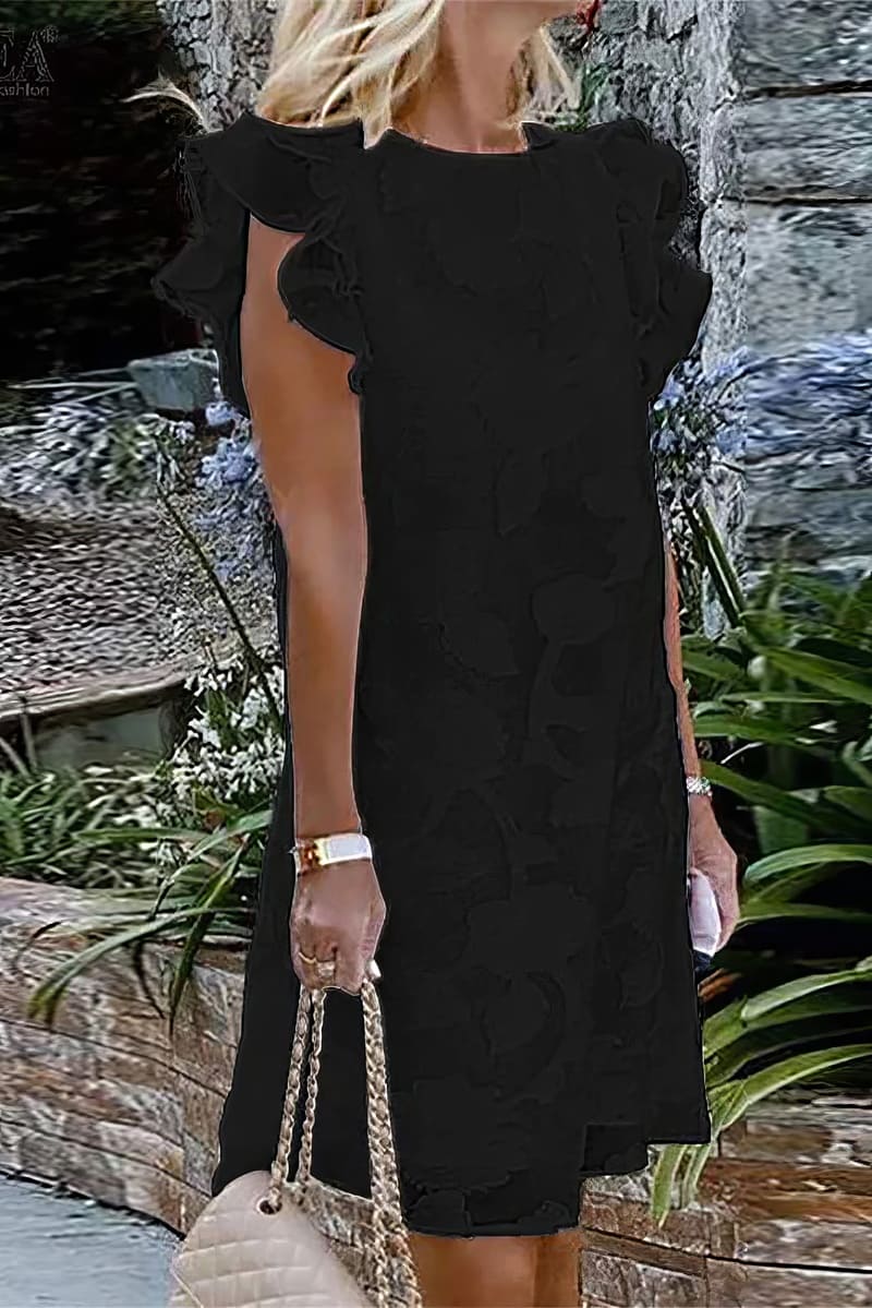 ISALINE – Robe Bohème Courte en Dentelle et Manches Volantées