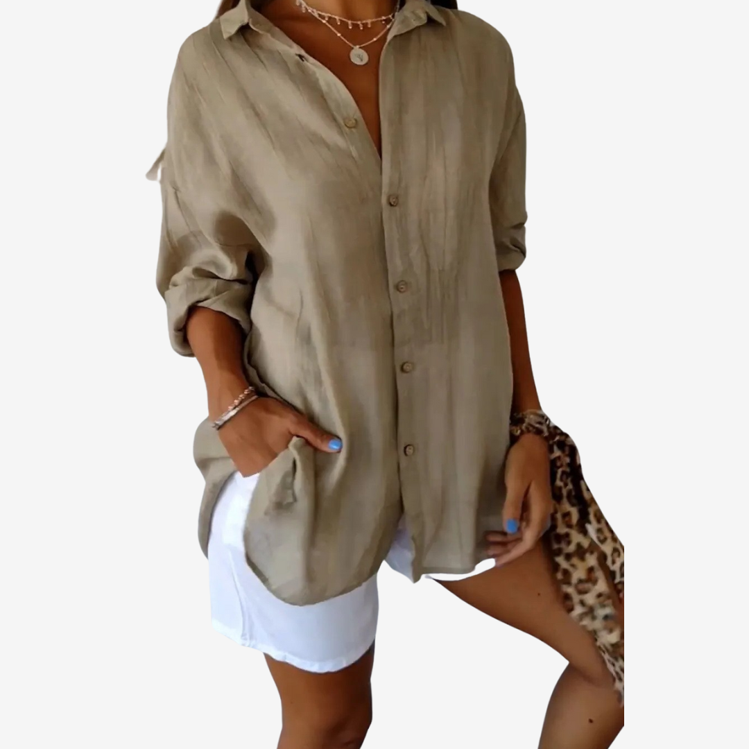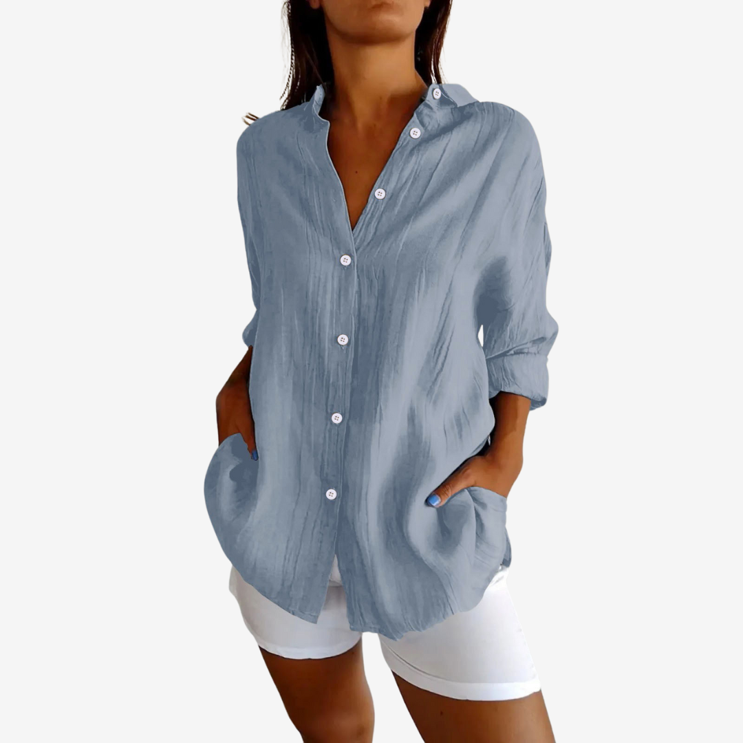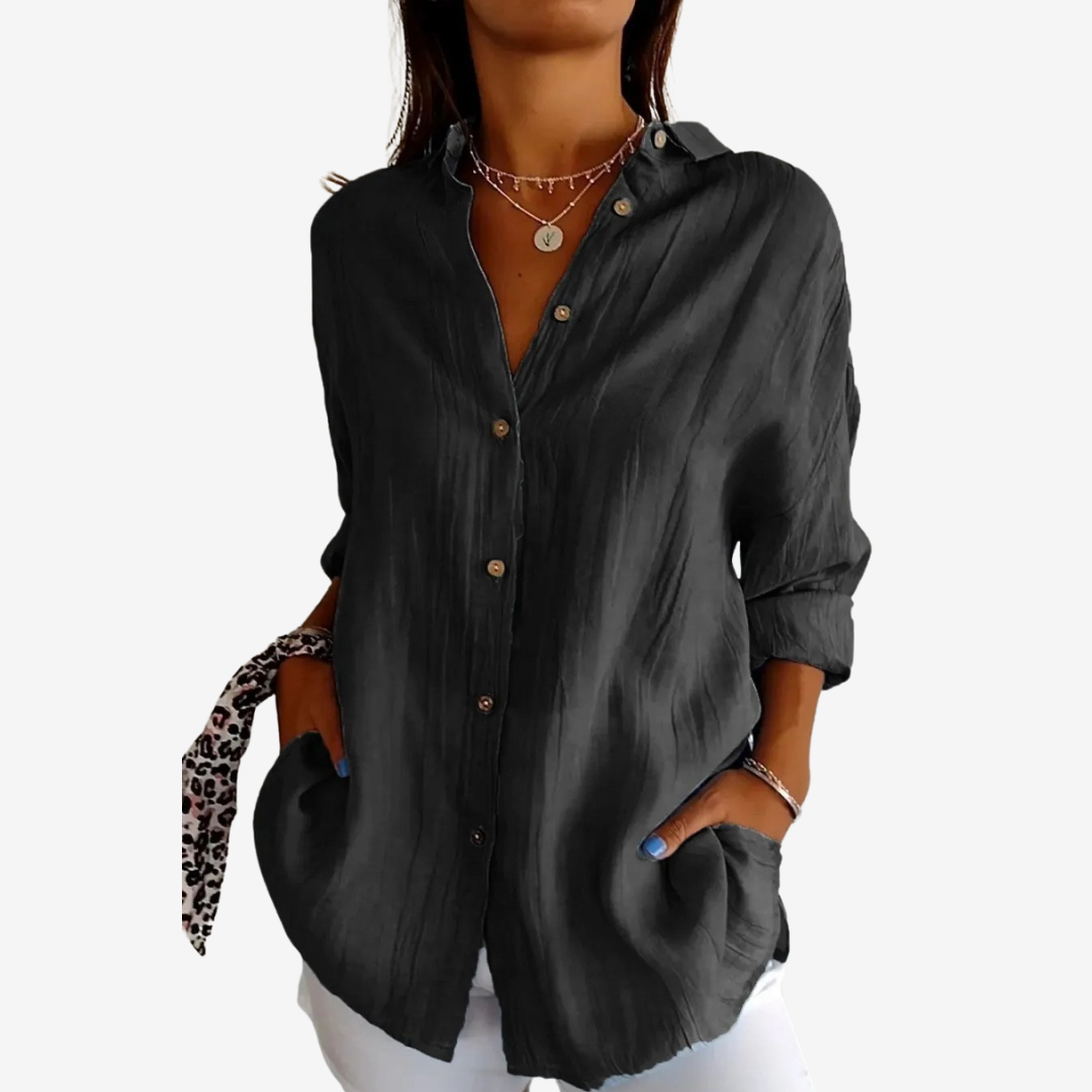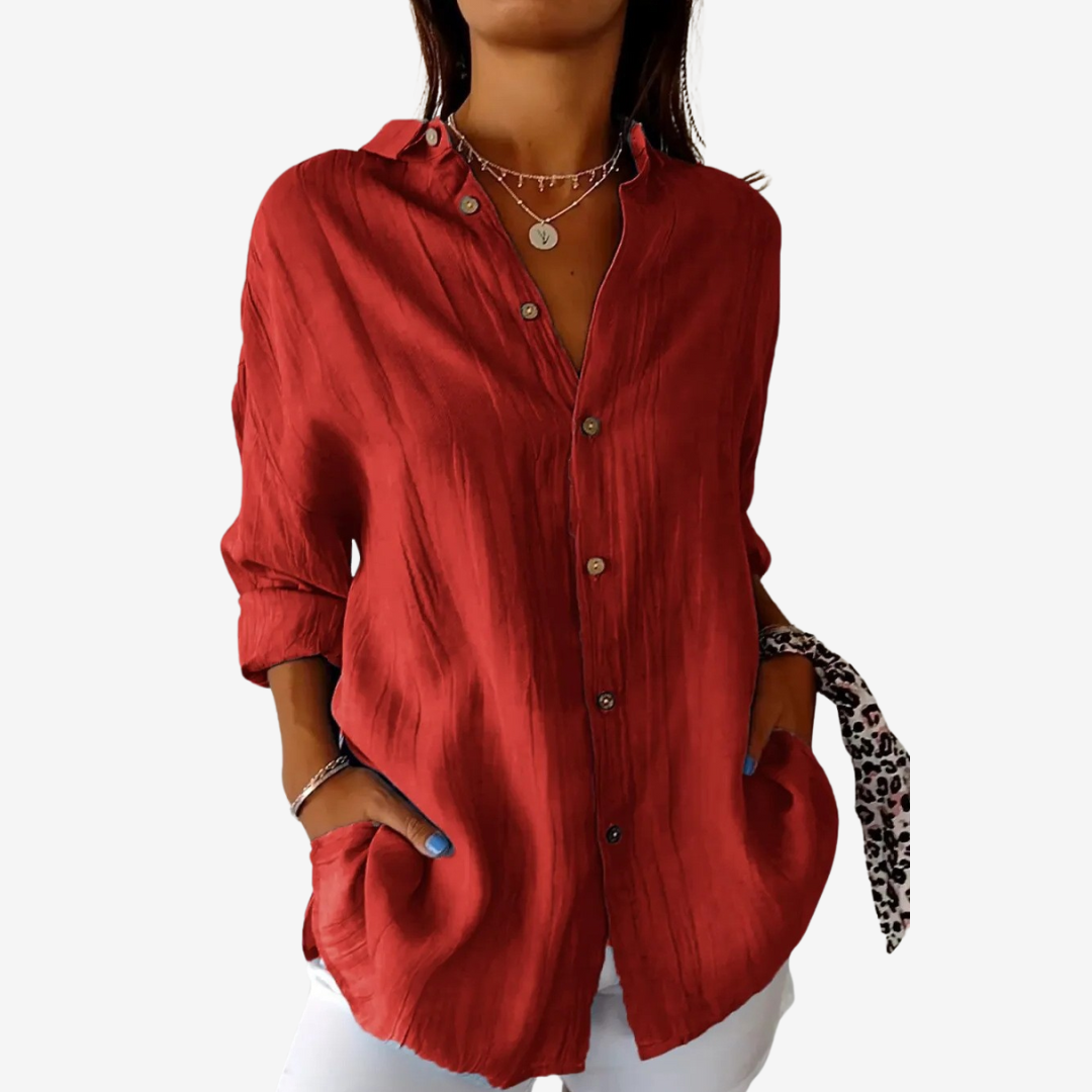 La chemise Josiane™ allie raffinement et confort. Confectionnée dans un tissu léger et respirant, elle arbore de délicats plis sur le devant et des poignets subtilement évasés. Avec sa coupe ajustée et décontractée, elle est parfaite pour le bureau ou les soirées chics et décontractées, avec une élégance et un raffinement naturels.