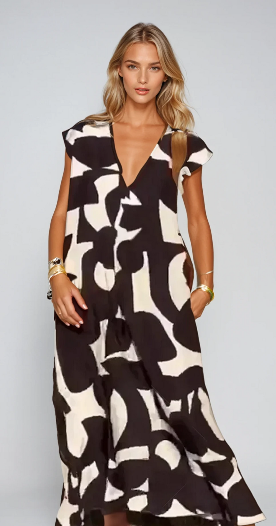 Faites sensation cet été avec la robe Juliette, une pièce fluide et raffinée qui illumine votre garde-robe. Son décolleté en V flatteur et son imprimé vibrant en font un choix idéal pour toutes vos occasions estivales. Que ce soit pour une garden-party, un brunch en terrasse ou une journée en bord de mer, Juliette se marie aussi bien avec des sandales pour un look décontracté qu’avec des talons et des accessoires pour une allure plus sophistiquée.