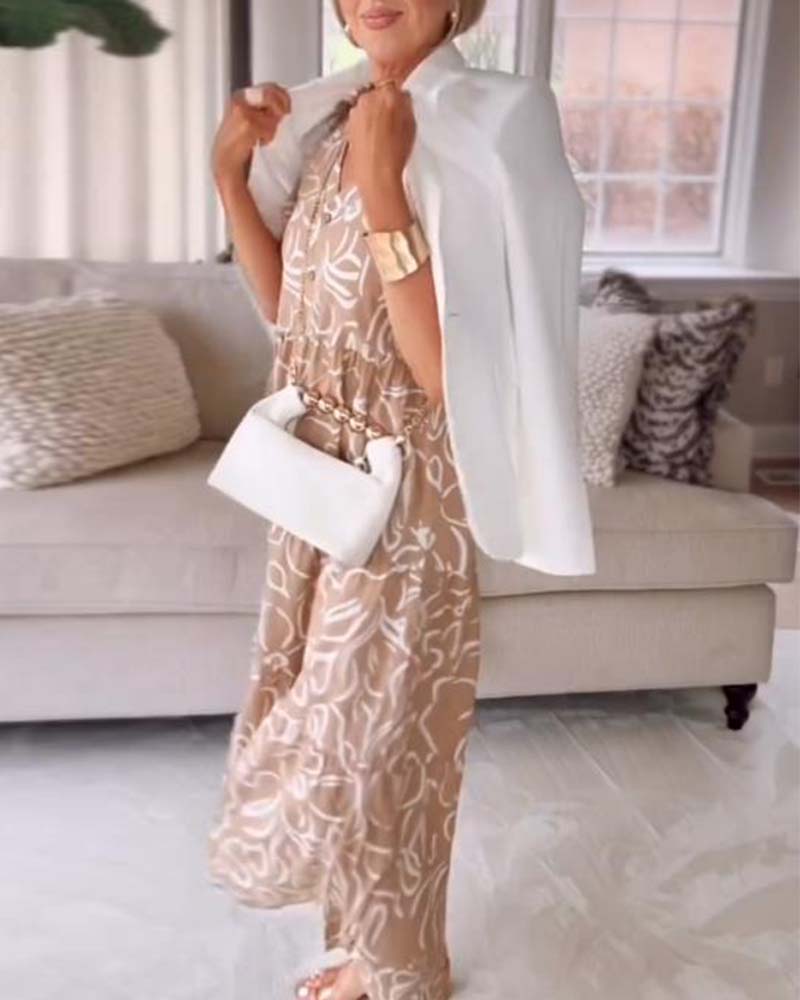Jupe avec Robe à Poches à Manches Courtes et Imprimés Géométriques