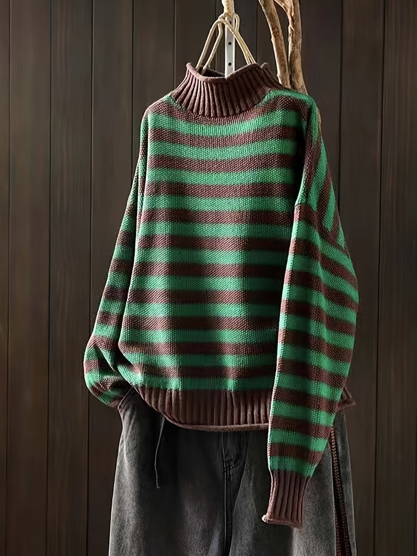 Laure – Pull Vintage à Rayures Colorblock avec Col Montant
